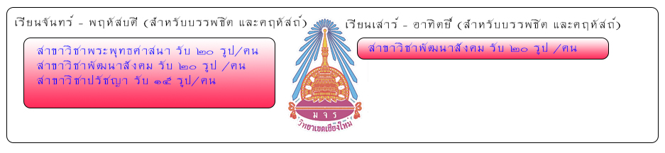 สอบถามรายละเอียดเพิ่มเติมได้ที่ โทร 053 278967, 270451 ปริญญาตรี ต่อ 203 | บัณฑิตศึกษา ต่อ 311