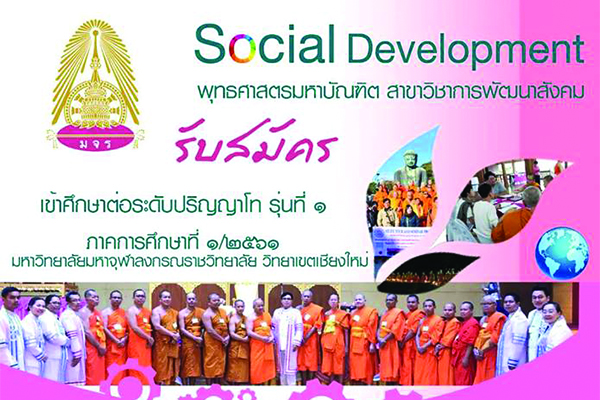 พุทธศาสตรมหาบัณฑิต สาขาวิชาการพัฒนาสังคม รับสมัคร เข้าศึกษาต่อระดับปริญญาโท รุ่นที่ 1 ภาคการศึกษาที่ 1/2561 รับสมัครตั้งแต่วันที่ 27 กันยายน - 25 ตุลาคม 2561