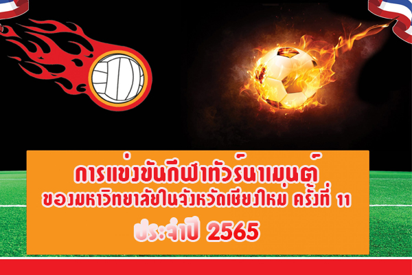 ขอเชิญชวน ร่วมกิจกรรมการแข่งขันกีฬาทัวร์นาเมนต์ของมหาวิทยาลัยในจังหวัดเชียงใหม่ ครั้งที่ ๑๑ประจำปีการศึกษาการศึกษา ๒๕๖๕ โดยแบ่งเป็น ๓ ชนิดกีฬา ระหว่างวันที่ ๒๑ พฤศจิกายน – ๓ ธันวาคม ๒๕๖๕ ประกอบด้วย ...