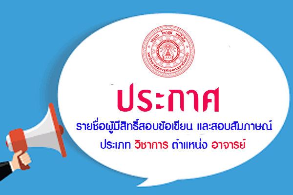 ประกาศรายชื่อผู้มีสิทธิ์สอบข้อเขียน สัมภาษณฺ ตำแหน่ง อาจารย์