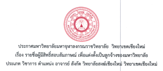 ประกาศมหาวิทยาลัยมหาจุฬาลงกรณราชวิทยาลัย วิทยาเขตเชียงใหม่