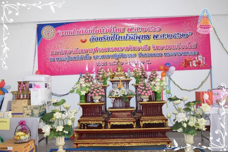 มหาวิทยาลัยมหาจุฬาลงกรณราชวิทยาลัย วิทยาเขตเชียงใหม่ ประกอบพิธีทำบุญสืบชาตา ส่งท้ายปีเก่าวิถีไทย ต้อนรับปีใหม่วิถีพุทธ โดยมีพระเทพปริยัติ เจ้าคณะเชียงใหม่ เป็นประธาน มีผู้บริหาร คณาจารย์ เจ้าหน้าที่ และบุคลากร ร่วมพิธี อย่างพร้อมเพรียง ณ พระอุโบสถพระเจ้าเก้าตื้อ วัดสวนดอก พระอารามหลวง อำเภอเมืองเชียงใหม่ จังหวัดเชียงใหม่ เมื่อ ๒๘ ธันวาคม ๒๕๖๑