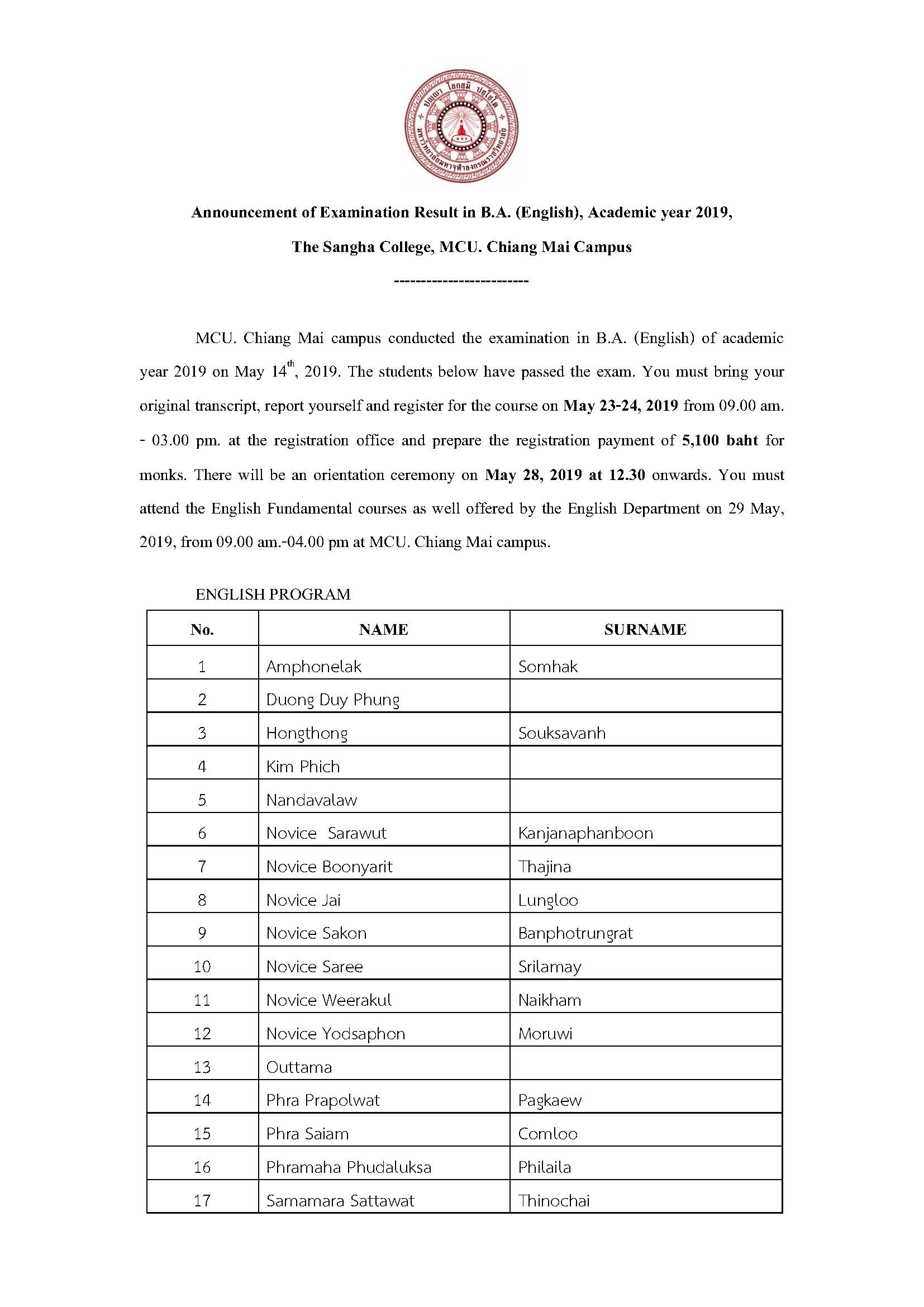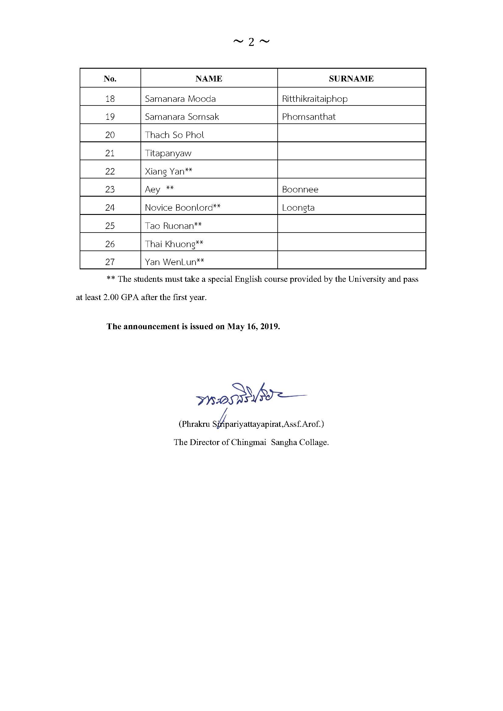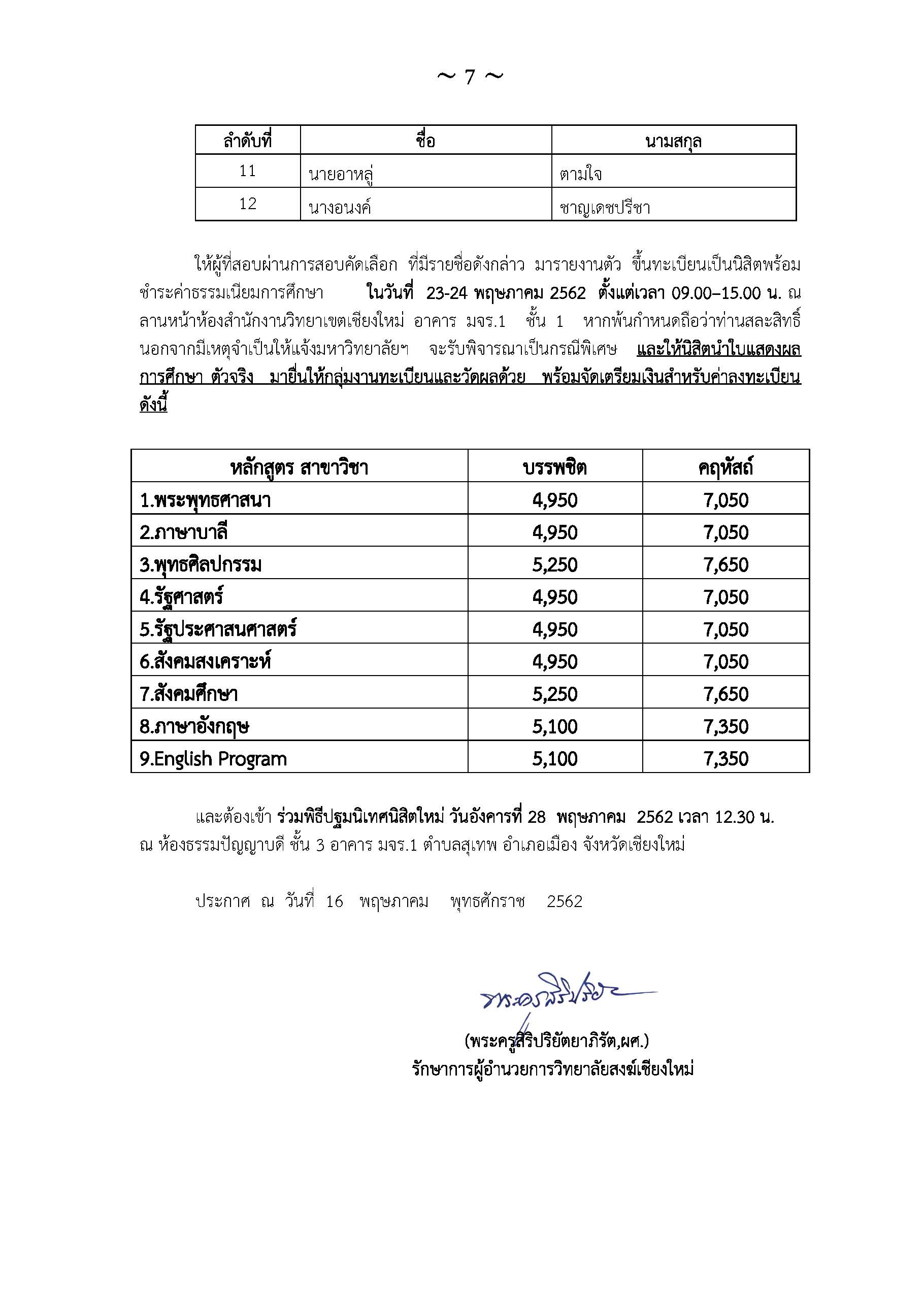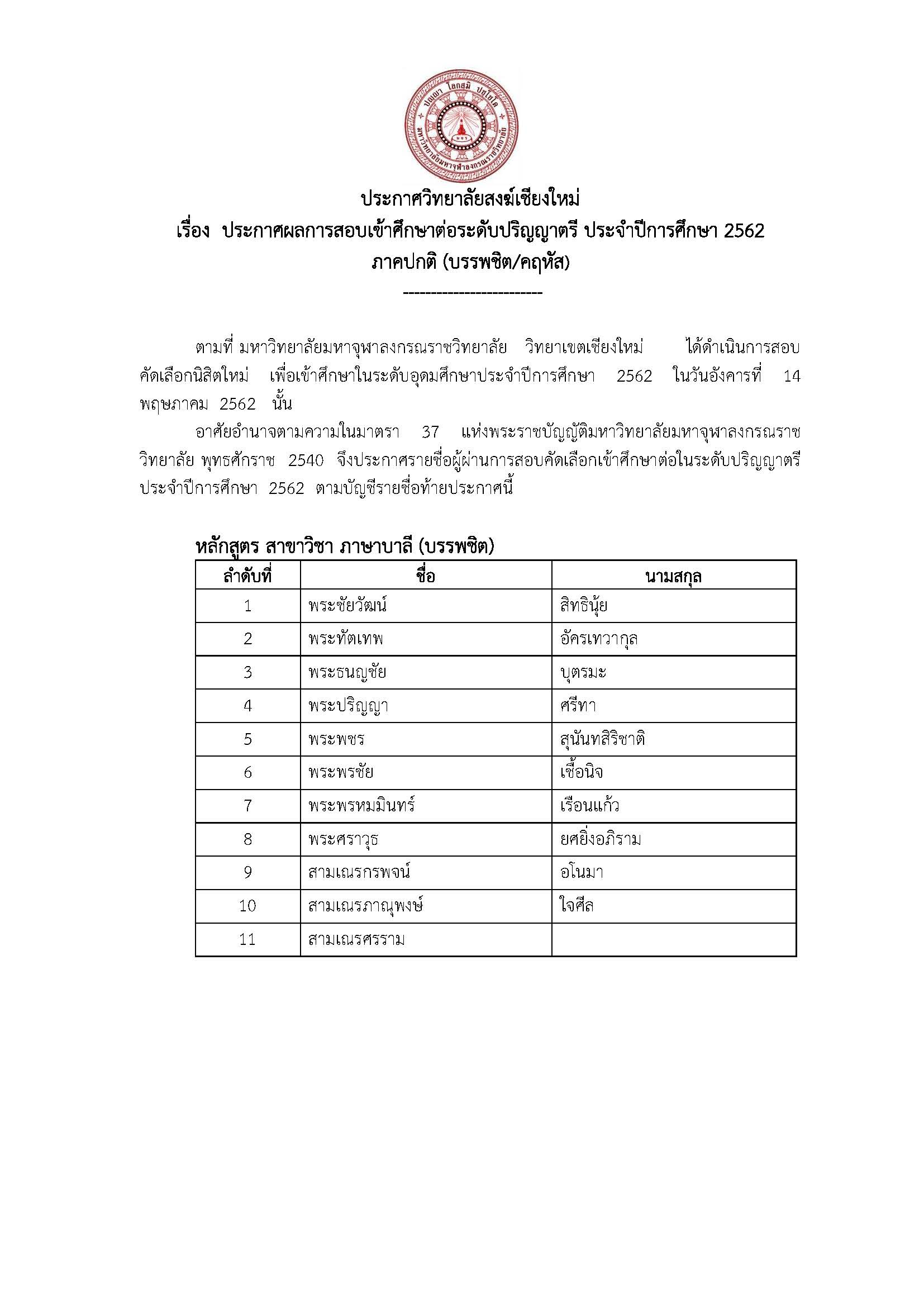 ประกาศรายชื่อผู้ผ่านการสอบคัดเลือกเข้าศึกษาต่อในระดับปริญญาตรี ประจำปีการศึกษา ๒๕๖๒ (แก้ไขเพิ่มเติม ๑๗ พ.ค. ๒๕๖๒)*
