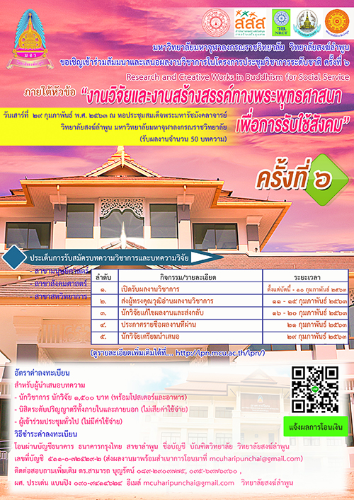 ภายใต้หัวข้อ “งานวิจัยและงานสร้างสรรค์ทางพระพุทธศาสนาเพื่อการรับใช้สังคม”มหาวิทยาลัยมหาจุฬาลงกรณราชวิทยาลัย วิทยาลัยสงฆ์ลำพูน