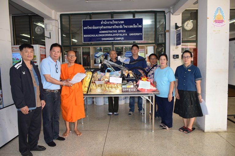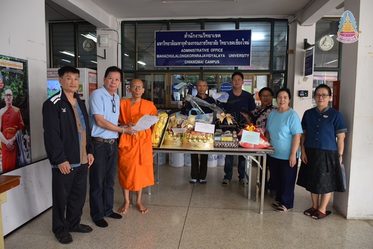 พระครูพิสุทธิ์ชยานุศาสก์ รักษาการผู้อำนวยการสำนักงานวิทยาเขต มหาวิทยาลัยมหาจุฬาลงกรณราชวิทยาลัย วิทยาเขตเชียงใหม่ พร้อมด้วยผู้บริหาร คณาจารย์ เจ้าหน้าที่ ร่วมมอบปัจจัย วัสดุ อุปกรณ์ สิ่งของให้กับชุมชนสวนดอก เพื่อนำไปจัดวันเด็กแห่งชาติ ประจำปี ๒๕๖๓ ณ หน้าสำนักงานวิทยาเขตฯ อำเภอเมืองเชียงใหม่ จังหวัดเชียงใหม่ เมื่อ ๑๐ มกราคม ๒๕๖๓