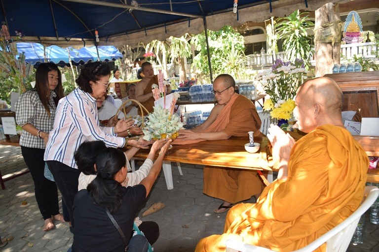 พระครูพิสุทธิ์ชยานุศาสก์ รักษาการผู้อำนวยการสำนักงานวิทยาเขต มจร.วิทยาเขตเชียงใหม่ พระบุญทรง ปุญธโร,ดร.อาจารย์ประจำ มจร.วิทยาเขตเชียงใหม่ พระครูสมุห์โกเมนทร์ คุณวีโร พระครูใบฏีสุชาติ สญฺญโต พร้อมคณะญาติธรรม ไปมอบเครื่องอุปโภค บริโภค ข้าวสาร อาหารแห้ง และผ้กสดให้กับวัดสมเด็จอาสภวัน (ดอยน้อย) ที่จัดงานเข้าปริวาสกรรมและปฏิบัติธรรมประจำปี ๒๕๖๓ โดยมีพระครูสิริวรธำรง เจ้าอาวาสเป็นผู้รับมอบ ณ วัดสมเด็จอาสภวัน (ดอยน้อย) ตำบลแม่สา อำเภอแม่ริม จังหวัดเชียงใหม่ เมื่อ ๒๒ มกราคม ๒๕๖๓