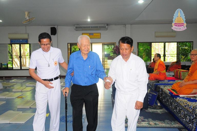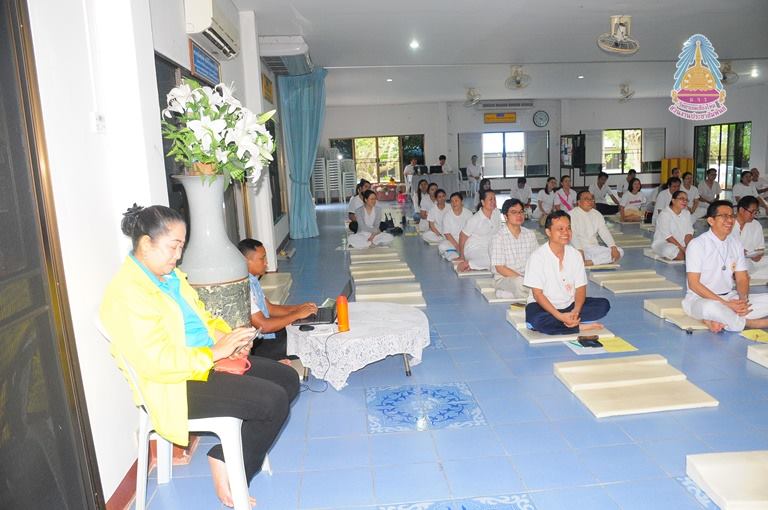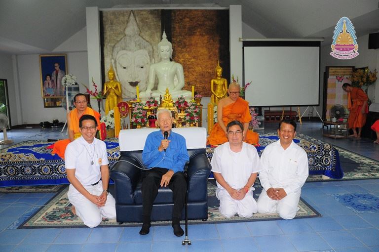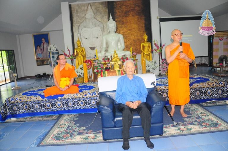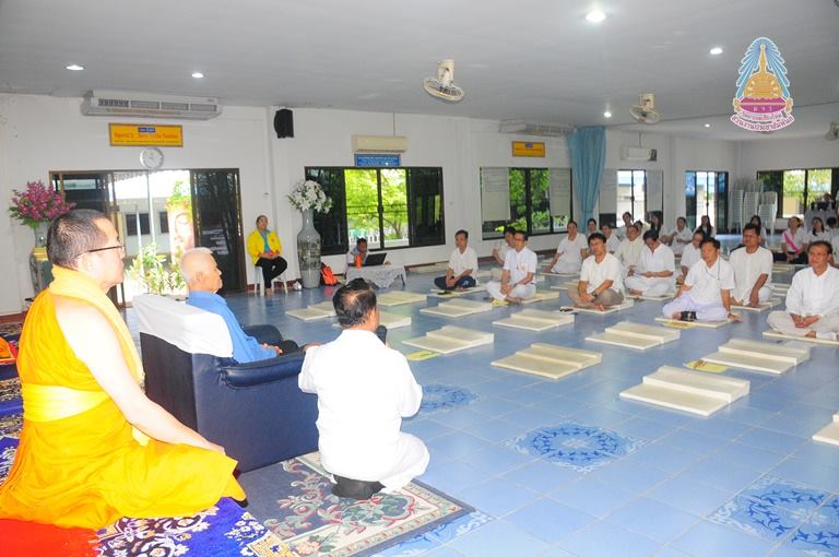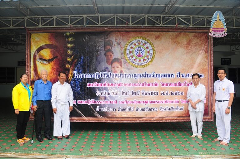 นายสมบูรณ์ กันทะปา เจ้าภาพผู้ถวายที่ดิน เจ้าภาพสร้างสถานปฏิบัติธรรมนานาชาติ มหาวิทยาลัยมหาจุฬาลงกรณราชวิทยาลัย วิทยาเขตเชียงใหม่ ถวายข้อคิด ให้โอวาท ให้กับบุคลากรมหาวิทยาลัยฯที่จัดโครงการปฏิบัติวิปัสสนากรรมฐานประจำปีพุทธศักราช ๒๕๖๑ ณ สถานปฏิบัติธรรมนานาชาติ มหาวิทยาลัยมหาจุฬาลงกรณราชวิทยาลัย วิทยาเขตเชียงใหม่ บ้านศรีวังธาร ตำบลป่าไผ่ อำเภอสันทราย จังหวัดเชียงใหม่ เมื่อ ๒๕สิงหาคม ๒๕๖๑