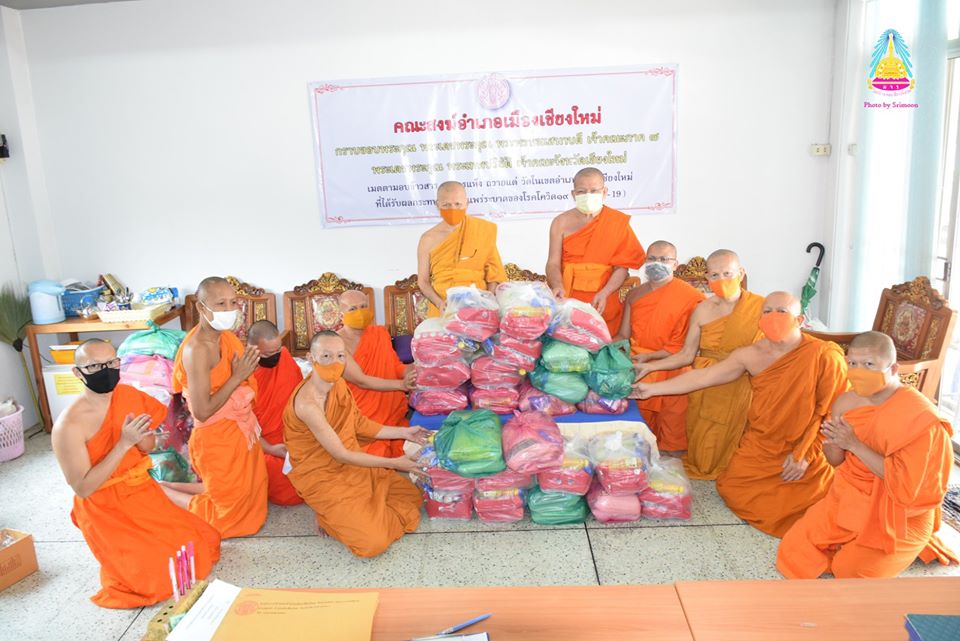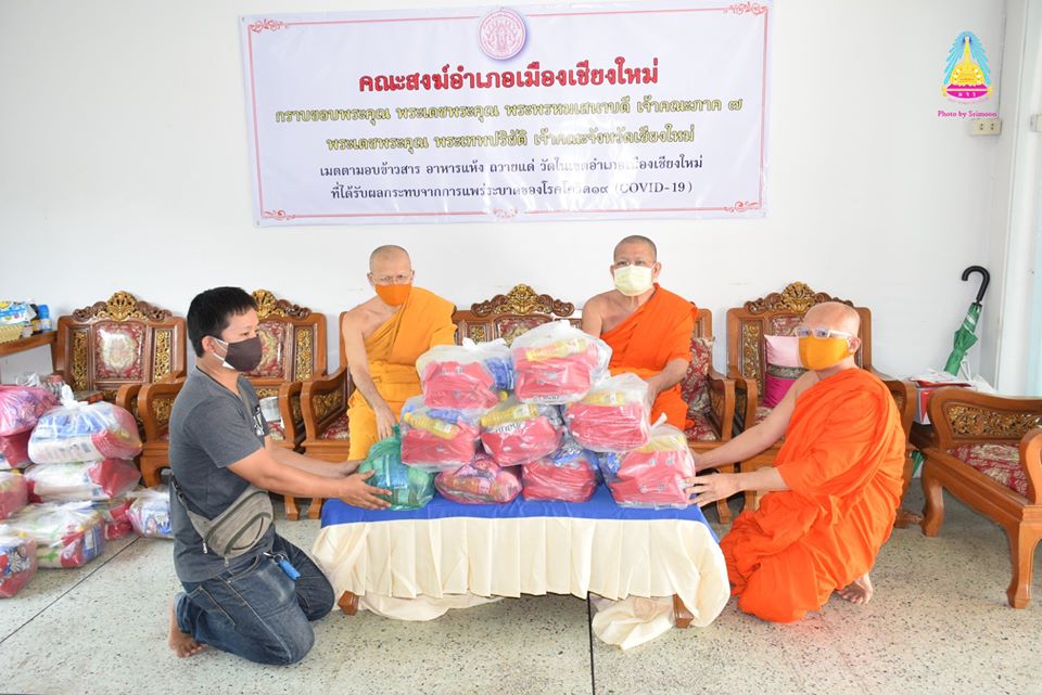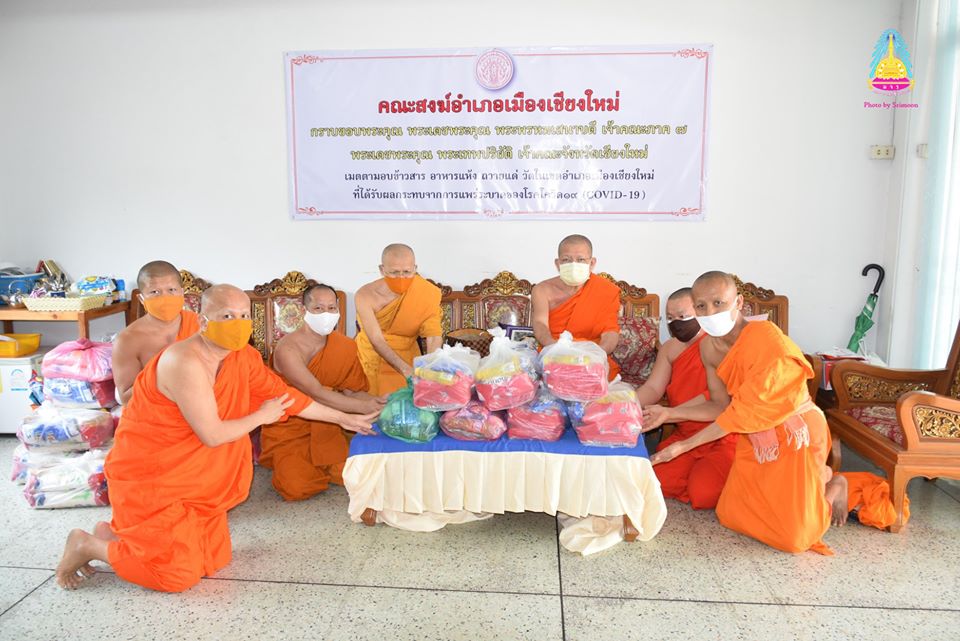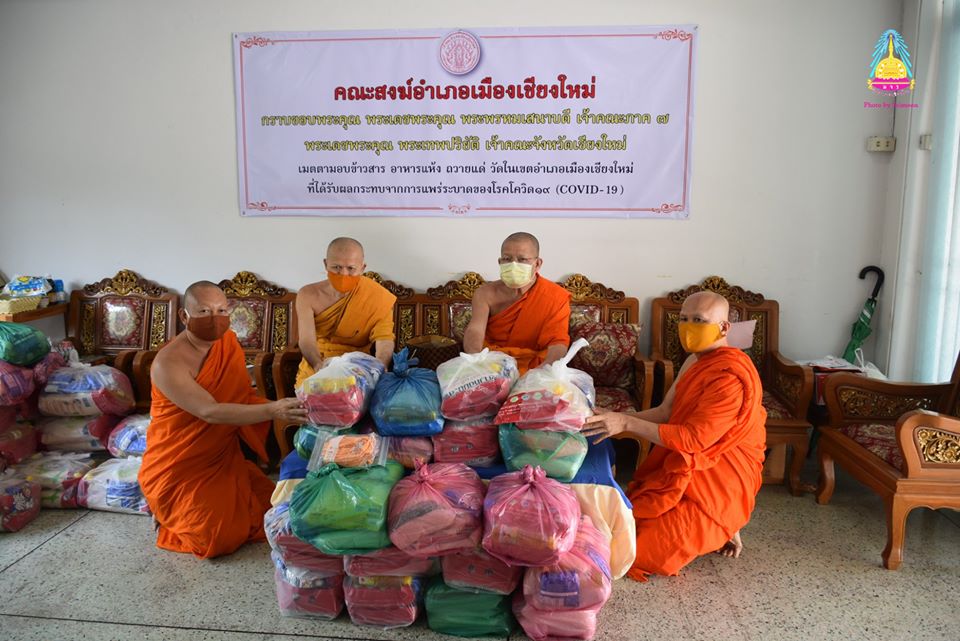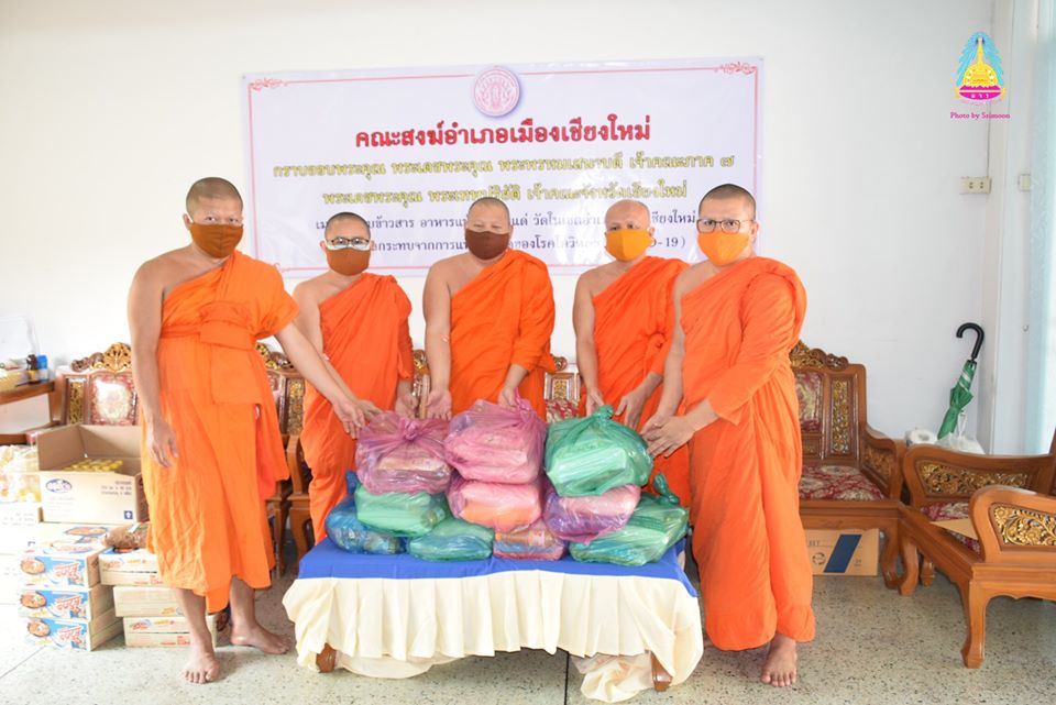 พระราชรัชมุนี เจ้าคณะอำเภอเมืองเชียงใหม่ ภาวนาธรรมาภิรัช วิ., พระครูวิทิตศาสนาทร, ดร. รองเจ้าคณะอำเภอเมืองเชียงใหม่ พระครูปลัดจตุพร,ดร.เลขานุการเจ้าคณะอำเภอเมืองเชียงใหม่ พร้อมคณะ ร่วมกันมอบข้าวสาร อาหารแห้ง อาทิ ไข่ ปลากระป๋อง มาม่า น้ำมันพืช หน้ากากอนามัย และเจลแอลกอฮอล์ล้างมือถวายแด่ วัด สำนักสงฆ์ ที่ได้รับผลกระทบกรณีการระบาดโรคติดต่อเชื้อไวรัสโคโรนา ๒๐๑๙ (COVID – 19) ในเขตอำเภอเมือง จำนวน ๑๘ ตำบล ๑๓๕ วัด พระภิกษุ สามเณร ๓,๔๓๗ รูป ณ สำนักงานเจ้าคณะอำเภอเมืองเชียงใหม่ วัดสวนดอก พระอารามหลวง อำเภอเมืองเชียงใหม่ จังหวัดเชียงใหม่ เมื่อ ๑๐ เมษายน ๒๕๖๓