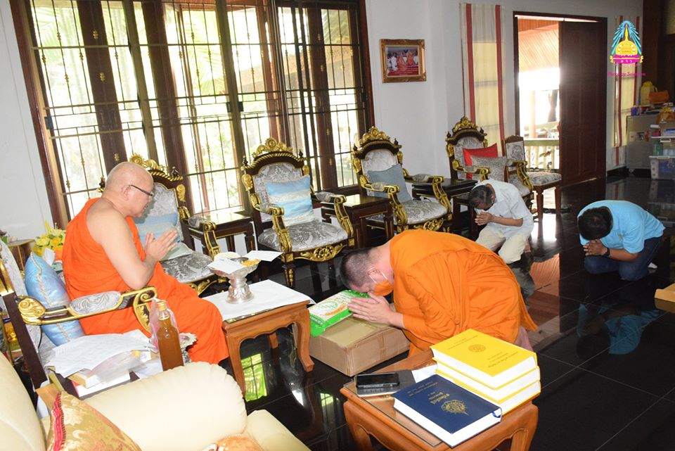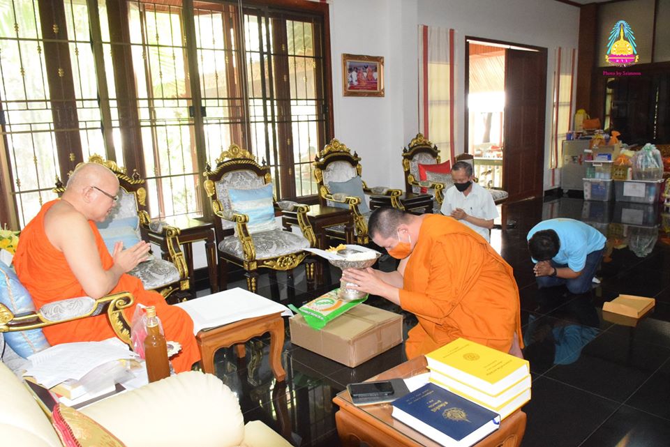 พระครูวรวรรณวิวัฒน์ ,ดร. เจ้าคณะตำบลโหล่งขอด อำเภอพร้าว เชียงใหม่ พร้อมคณะเข้าสูมาคารวะสระเกล้าดำหัวพระราชรัชมุนี เจ้าคณะอำเภอเมืองเชียงใหม่ เจ้าอาวาสวัดสวนดอก เนื่องในประเพณีสงกรานต์ (ปี๋ใหม่เมือง) ประจำปี ๒๕๖๓ พร้อมถวายปัจจัยเป็นเจ้าภาพ ภาพวาดในพระอุโบสถ พระเจ้าเก้าตื้อ ณ กุฏิเจ้าอาวาส วัดสวนดอก พระอารามหลวง อำเภอเมืองเชียงใหม่ จังหวัดเชียงใหม่ เมื่อ ๒๐ เมษายน ๒๕๖๓