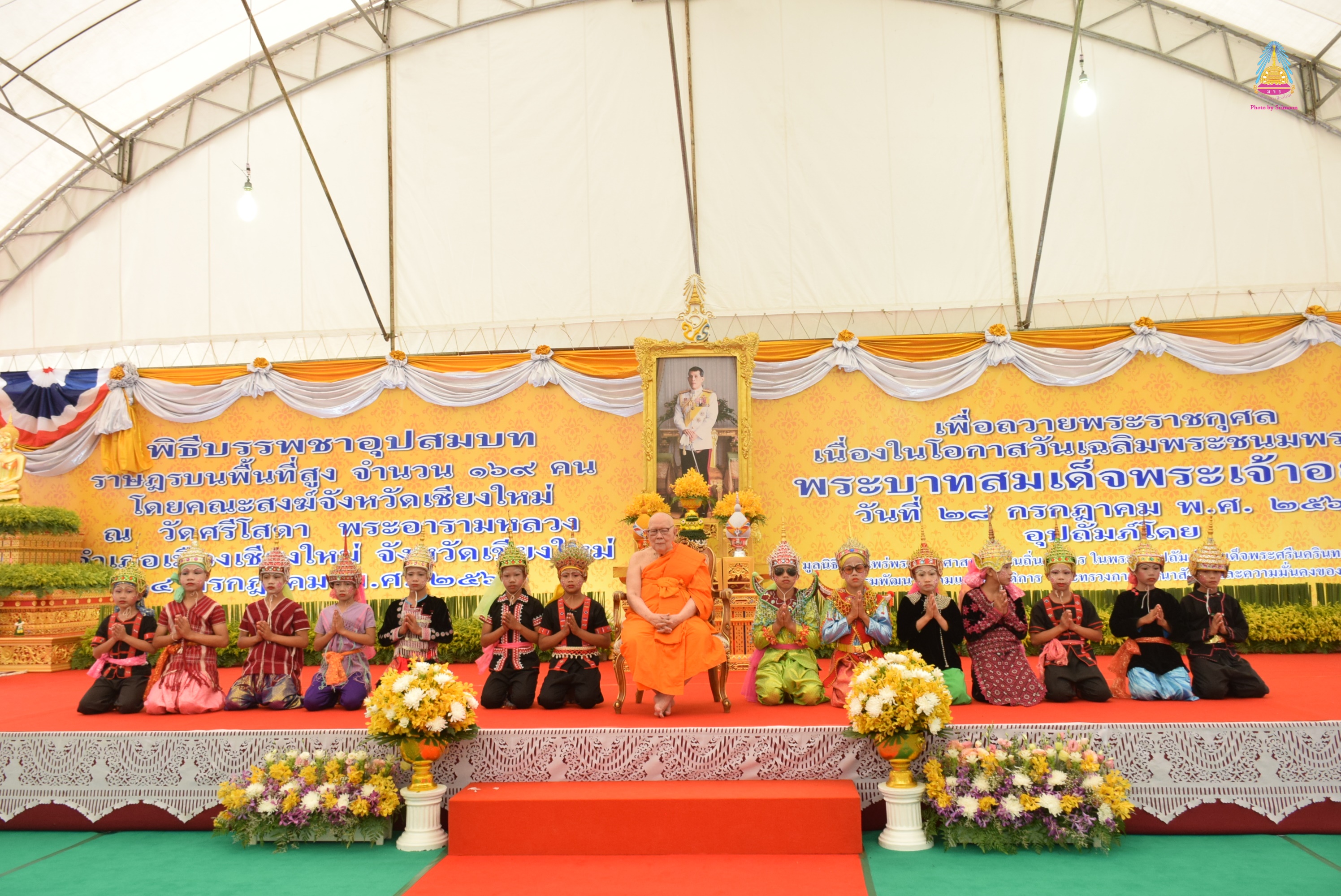ผู้บรรพชาอุปสมบท จำนวน ๑๖๙ รูป/คน เพื่อถวายพระราชกุศลเนื่องในโอกาสวันเฉลิมพระชนมพรรษา พระบาทสมเด็จพระปรเมนทรรามาธิบดีศรีสินทรมหาวชิราลงกรณ พระวชิรเกล้าเจ้าอยู่หัว กราบขอขมา ต่อ พระเทพโกศล ผู้อำนวยการสำนักงานพระธรรมจาริกส่วนภูมิภาค นายปรเมธี วิมลศิริ ปลัดกระทรวงการพัฒนาสังคมและความมั่นคงของมนุษย์ โดยมี พระวิมลมุนี รองประธานคณะพระธรรมจาริก กล่าวถวายรายงาน ท่ามกลางแขกผู้มีเกียรติ คณะเจ้าภาพ ผู้ปกครอง ร่วมพิธี ณ วัดศรีโสดา พระอารามหลวง อำเภอเมืองเชียงใหม่ จังหวัดเชียงใหม่ เมื่อ ๔ กรกฎาคม ๒๕๖๓