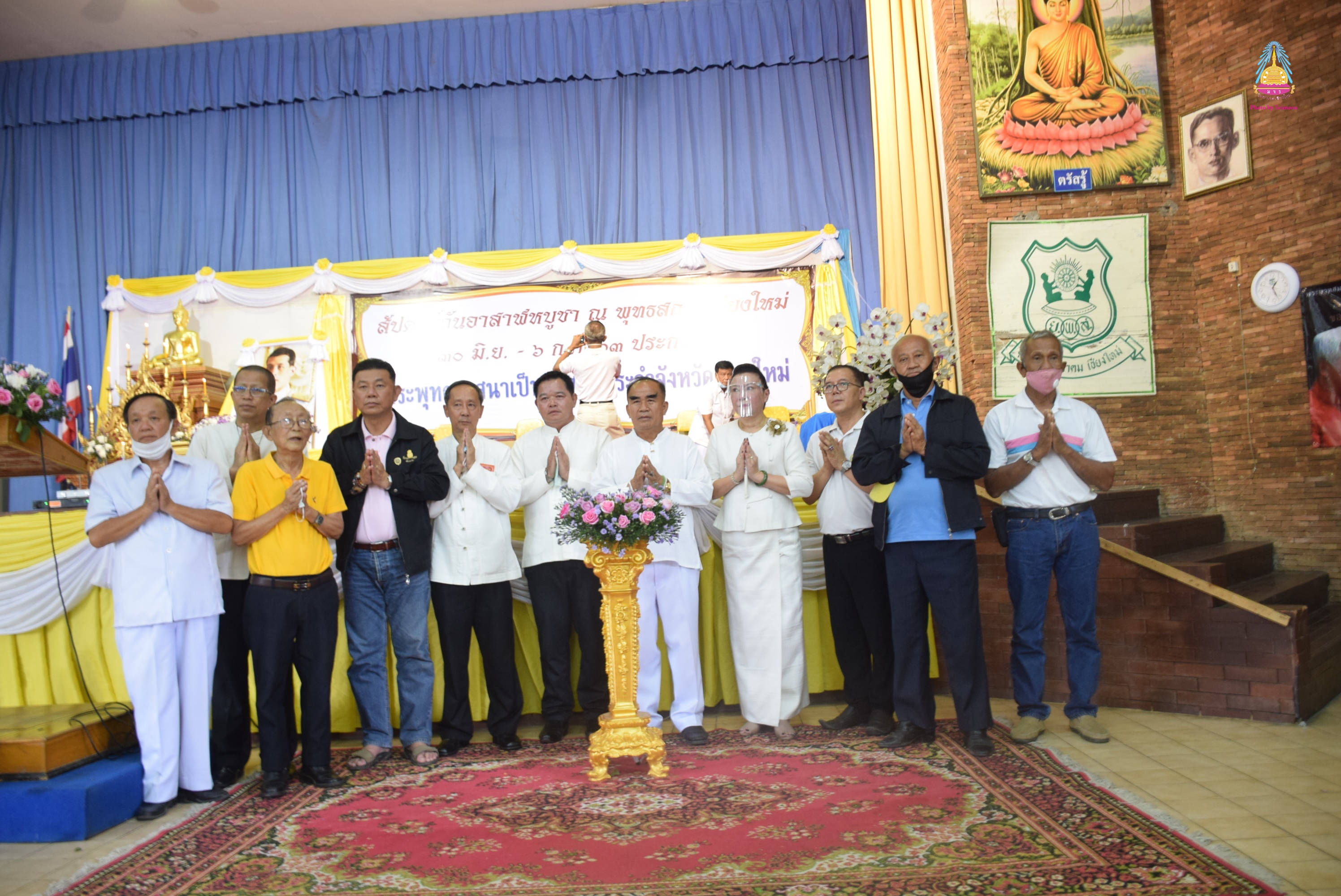 พระเทพมังคลาจารย์ รองเจ้าคณะจังหวัดเชียงใหม่ เป็นประธานฝ่ายสงฆ์ นายอุ่นเรือน คำภิโล นายกสมาคมกำนันผู้ใหญ่บ้านจังหวัดเชียงใหม่ ประธานฝ่ายฆราวาส อ่านปฏิญญาจังหวัดเชียงใหม่ ว่าด้วยความร่วมมือในการประกาศให้พระพุทธศาสนาเป็นศาสนาประจำจังหวัดเชียงใหม่ ขององค์กร ๘ องค์กร พร้อมมอบเกียรติบัตรให้กับบุคคลผู้ทำคุณประโยชน์ต่อพระพุทธศาสนา เนื่องในสัปดาห์วันอาสาฬหบูชา – วันเข้าพรรษา ประจำปี ๒๕๖๓ โดยมีนายชัยฤทธิ์ วรรณประภา ประธานมูลนิธิพุทธสมาคม จังหวัดเชียงใหม่ กล่าวรายงานท่ามกลางพุทธศาสนิกชน และองค์กรชาวพุทธรวมพลัง ณ พุทธสถาน อำเภอเมืองเชียงใหม่ จังหวัดเชียงใหม่ เมื่อ ๔ กรกฎาคม ๒๕๖๓