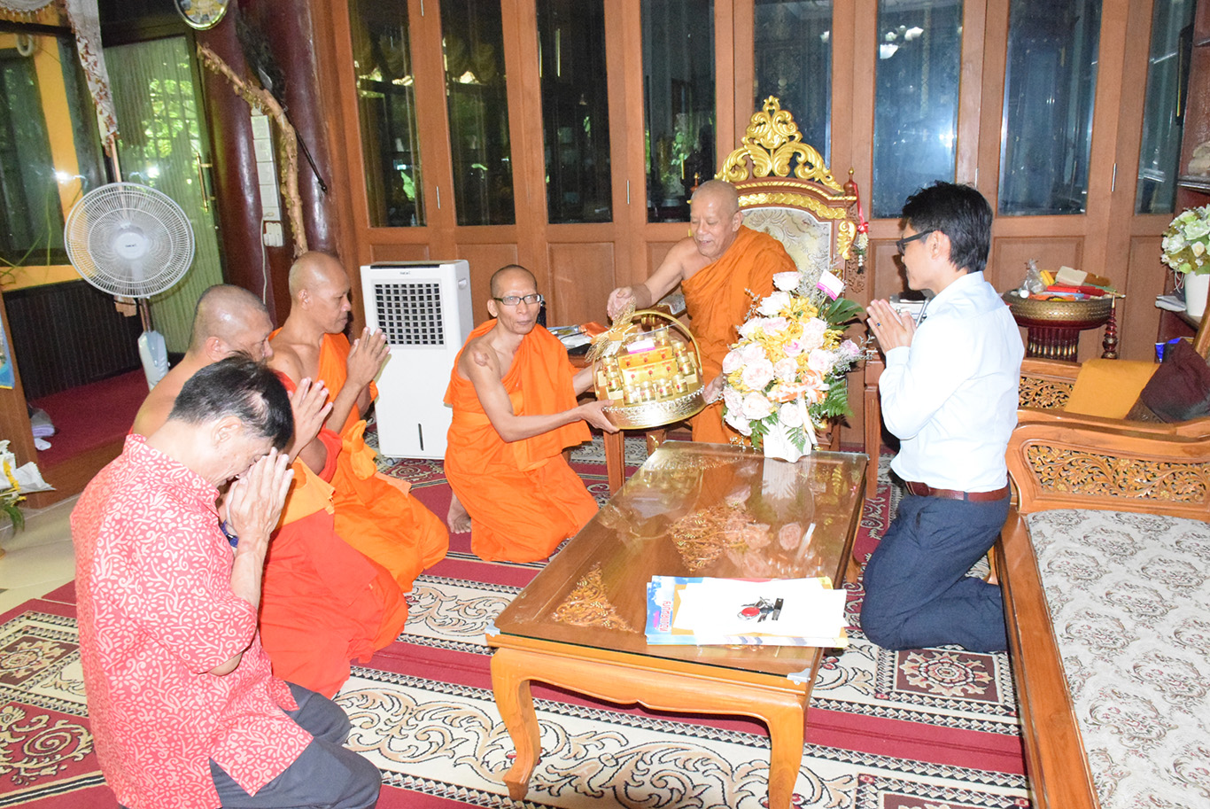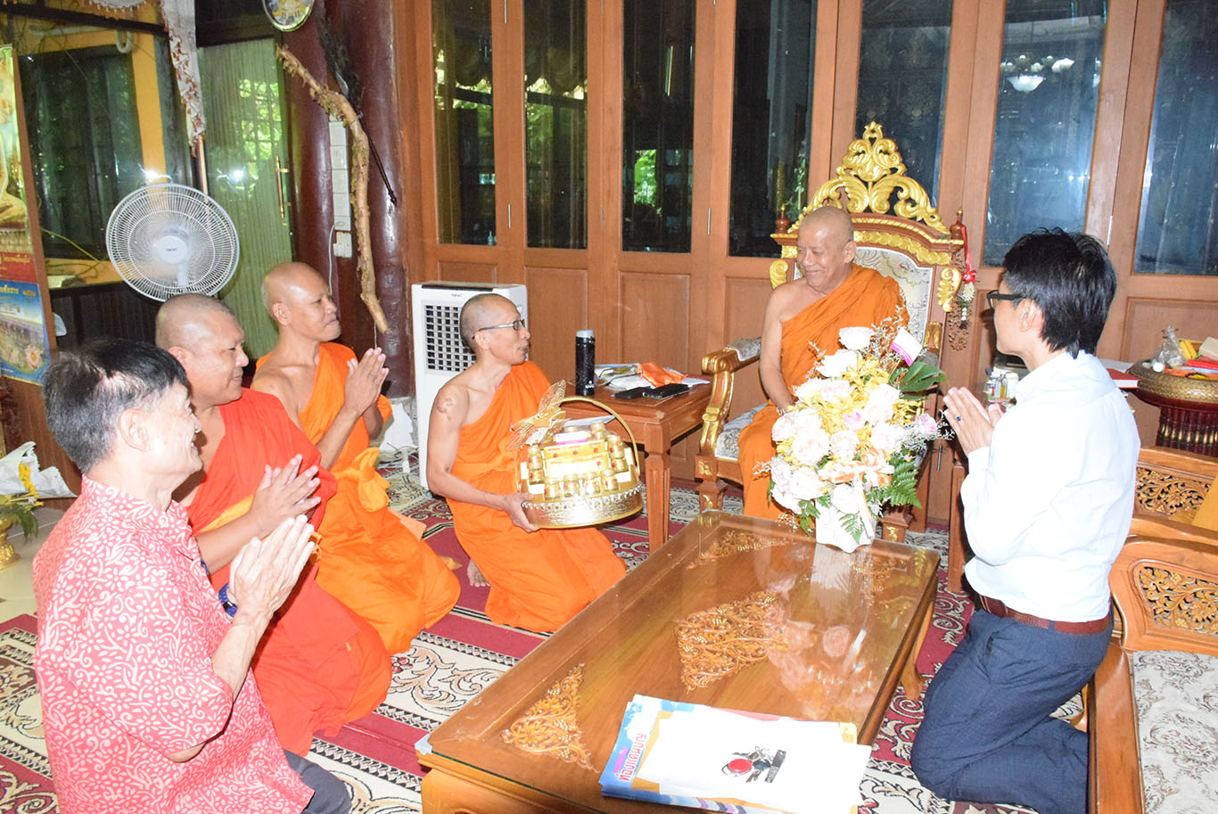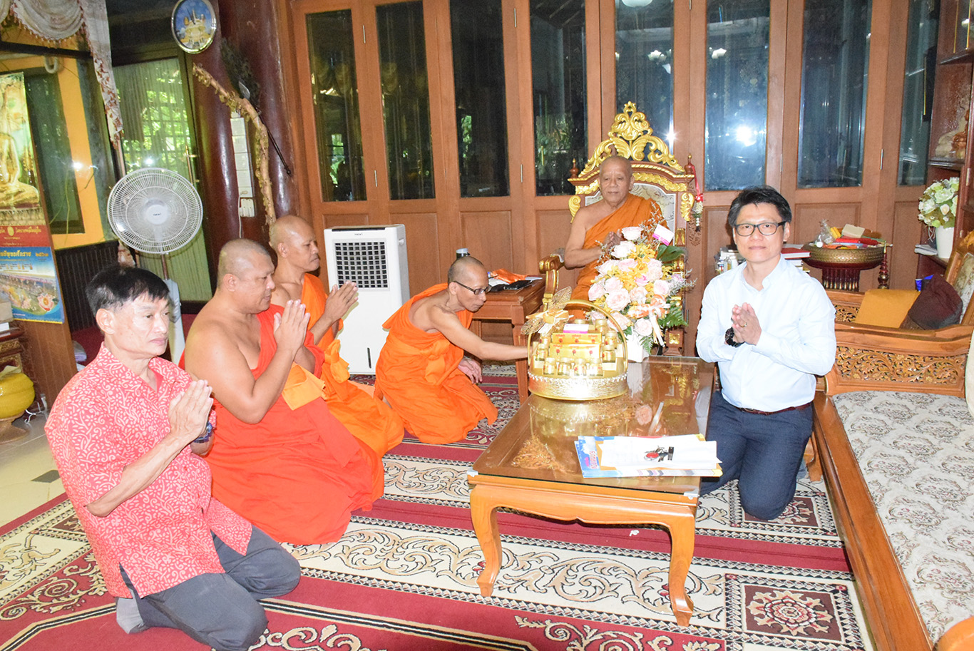 พระครูพิสุทธิ์ชยานุศาสก์ รักษาการผู้อำนวยสำนักงานวิทยาเขต พร้อมด้วยผู้บริหาร คณาจารย์ เจ้าหน้าที่ มหาวิทยาลัยมหาจุฬาลงกรณราชวิทยาลัย วิทยาเขตเชียงใหม่ ถวายมุทิตาจิตแด่ครูสถิตธรรมาภิรักษ์,ดร.(ค.ด.กิตติ์) เจ้าคณะอำเภอไชยปราการ ในโอกาสที่ มหาวิทยาลัยราชภัฏเชียงใหม่ ได้ถวายดุษฎีบัณฑิตกิตติมศักดิ์ สาขาพัฒนาชุมชน ณ วัดป่าไม้แดง อำเภอไชยปราการ จังหวัดเชียงใหม่ เมื่อ ๙ กรกฎาคม ๒๕๖๓