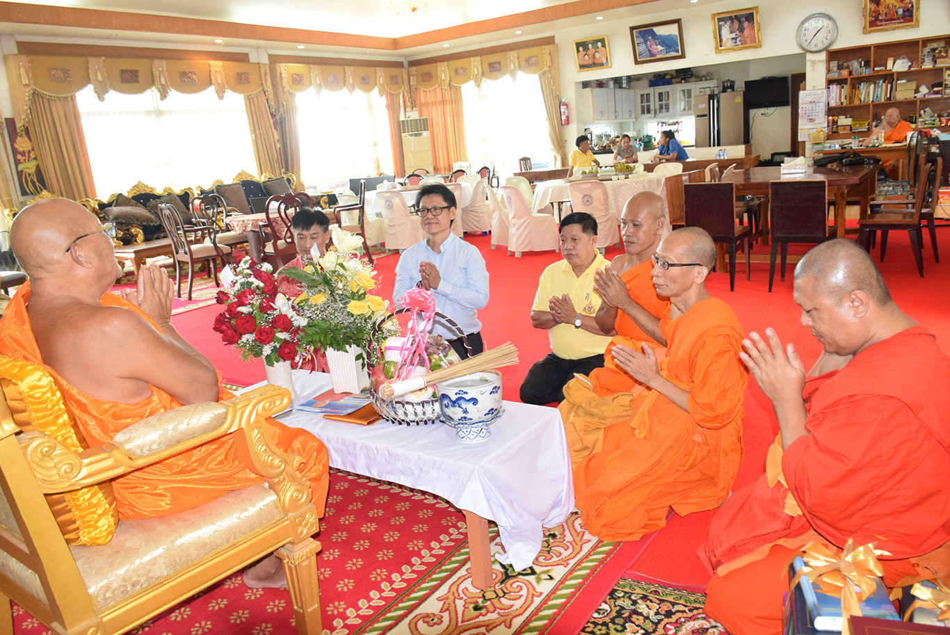 พระครูพิสุทธิ์ชยานุศาสก์ รักษาการผู้อำนวยสำนักงานวิทยาเขตเชียงใหม่ พร้อมด้วยผู้บริหาร คณาจารย์ เจ้าหน้าที่ มหาวิทยาลัยมหาจุฬาลงกรณราชวิทยาลัย วิทยาเขตเชียงใหม่ ถวายมุทิตาสักการะแด่พระเดชพระคุณพระเทพมังคลาจารย์ (สมาน กิตฺติโสภโณ น.ธ.เอก, พธ.ม.(กิตติ์), ศศ.ด. (กิตติ์)) รองเจ้าคณะจังหวัดเชียงใหม่ เจ้าอาวาสวัดท่าตอน พระอารามหลวง อายุวัฒนมงคล ๗๐ พรรษา ๕๐ เนื่องในโอกาสครบรอบคล้ายวันเกิด ณ วัดท่าตอน พระอารามหลวง อำเภอแม่อาย จังหวัดเชียงใหม่ เมื่อ ๙ กรกฎาคม ๒๕๖๓