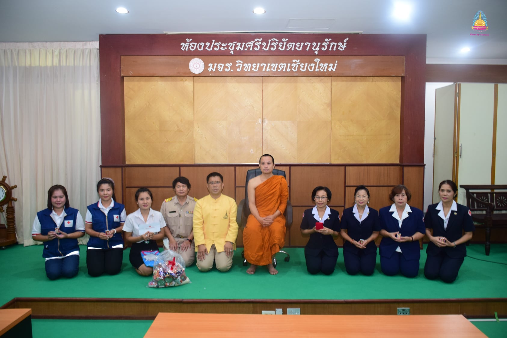นางสุดาภรณ์ สงวนสัตย์ นายกเหล่ากาชาดจังหวัดเชียงใหม่ พร้อมคณะ มอบทุนการศึกษา ทุนพระราชานุเคราะห์ ในสมเด็จพระกนิษฐาธิราชเจ้า กรมสมเด็จพระเทพรัตนราชสุดาฯ สยามบรมราชกุมารี ให้กับนางสาวรวยคือ ชัยวงษ์ศา นิสิตคณะครุศาสตร์ สาขาวิชาสังคมศึกษา ชั้นปีที่ ๒ มหาวิทยาลัยมหาจุฬาลงกรณราชวิทยาลัย วิทยาเขตเชียงใหม่ โดยมีพระครูสุตพัฒโนดม ,ผศ.ดร.ผู้อำนวยการวิทยาลัยสงฆ์เชียงใหม่กล่าวต้อนรับ ณ ห้องประชุมศรีปริยัตยานุรักษ์ มจร.วิทยาเขตเชียงใหม่ อำเภอเมืองเชียงใหม่ จังหวัดเชียงใหม่ เมื่อ ๓ สิงหาคม ๒๔๖๓