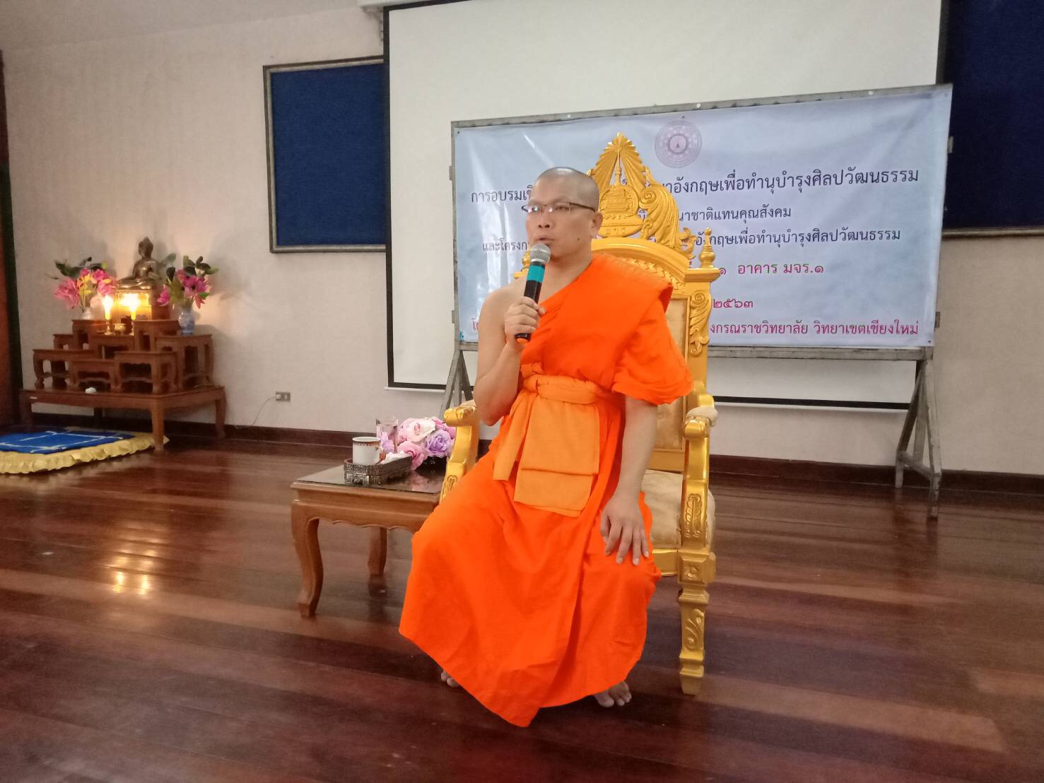 พระครูสิริบรมธาตุพิทักษ์ผศ.ดร. ผู้อำนวยการสำนักวิชาการ มหาวิทยาลัยมหาจุฬาลงกรณราชวิทยาลัย วิทยาเขตเชียงใหม่ เป็นประธานเปิดการอบรมเชิงปฏิบัติการใช้ภาษาอังกฤษเพื่อทำนุบำรุงศิลปวัฒนธรรมภายใต้โครงการนิสิตนานาชาติแทนคุณสังคม โดยสาขาวิชาภาษาอังกฤษ มีผู้บริหาร คณาจารย์ เจ้าหน้าที่ นิสิต ร่วมอบรม ณ ห้องประชุม ชั้น ๓ มหาวิทยาลัยมหาจุฬาลงกรณราชวิทยาลัย วิทยาเขตเชียงใหม่ อำเภอเมืองเชียงใหม่ จังหวัดเชียงใหม่ เมื่อ ๔ กันยายน ๒๕๖๓
