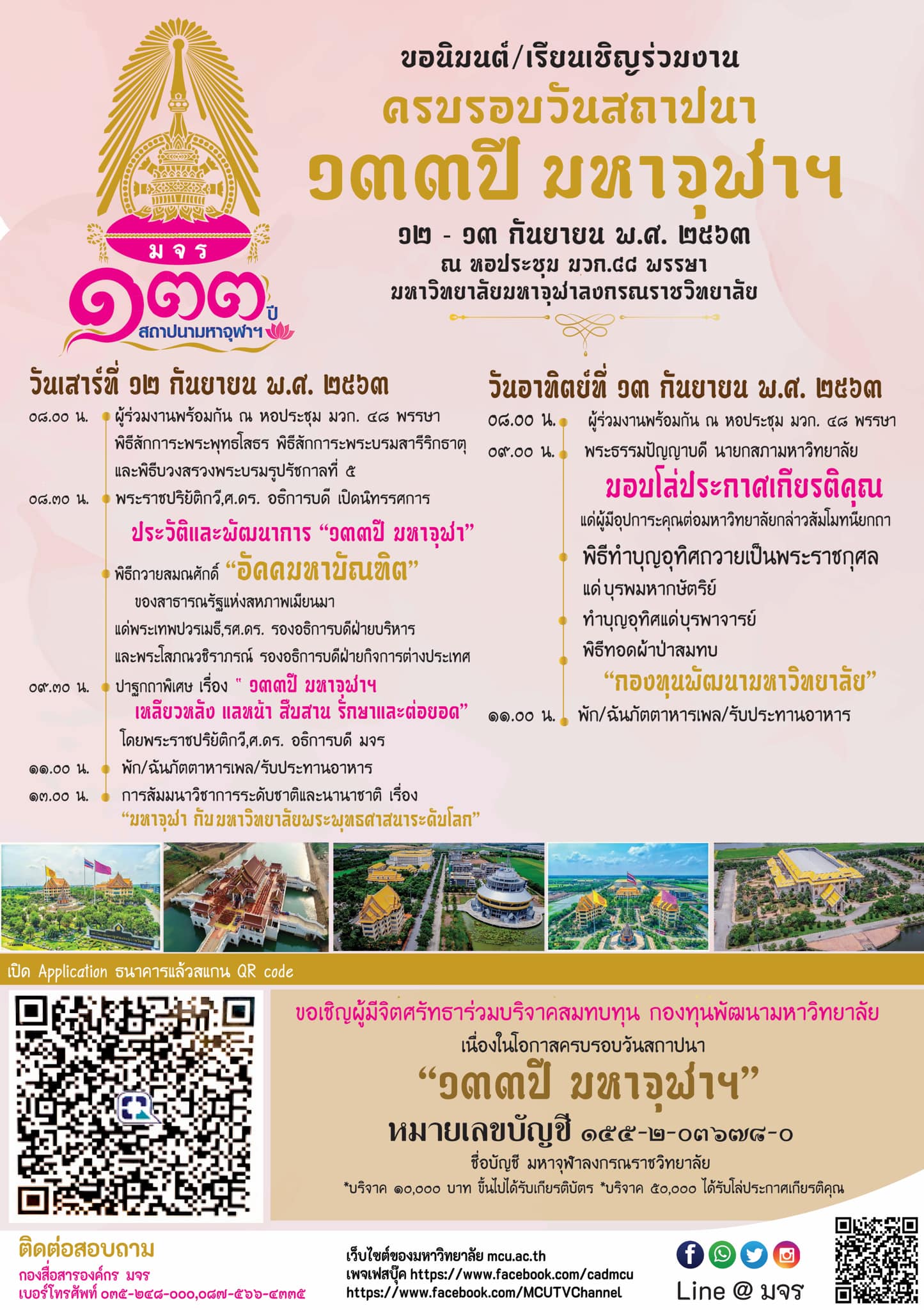 วันครบรอบสถาปนา ๑๓๓ ปีมหาจุฬาฯ
