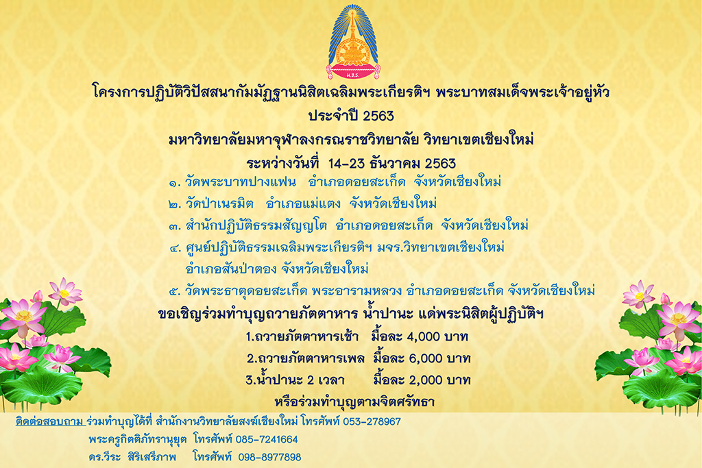 ณ พระวิหารหลวง วัดสวนดอก พระอารามหลวง เวลา 13.00 น.-16.00 น.