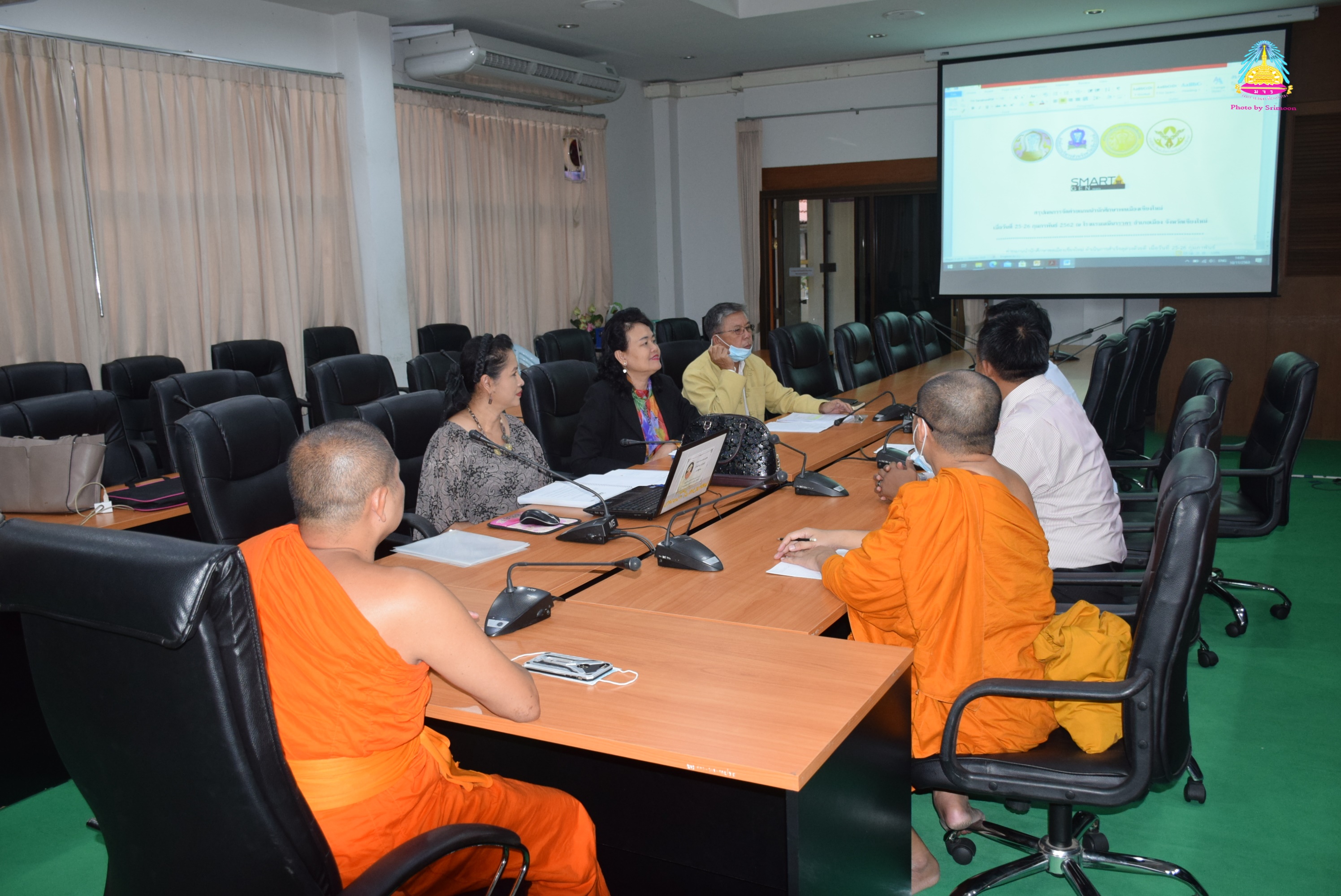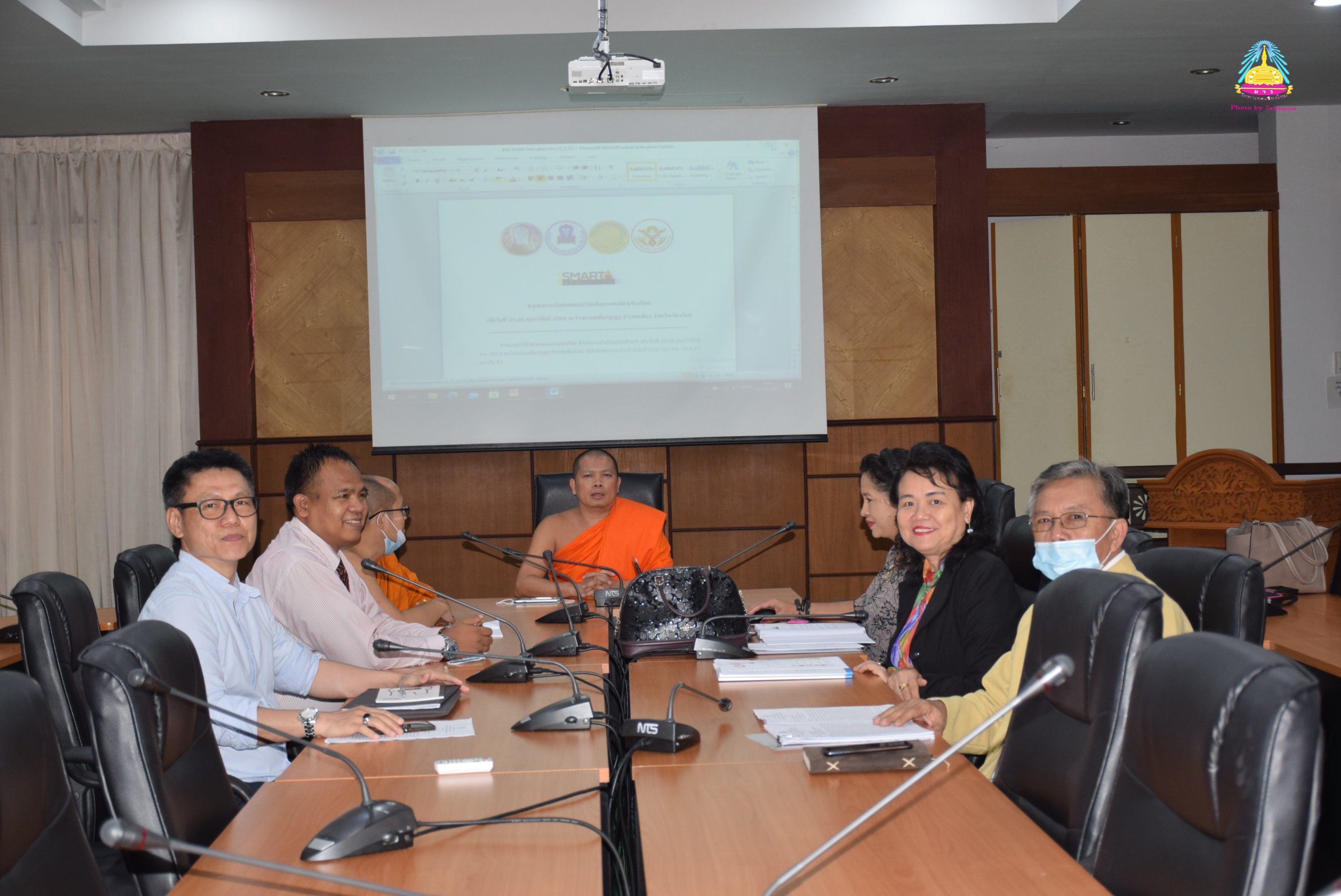 พระครูสิริบรมธาตุพิทักษ์ ,ผศ.ดร. ผู้อำนวยการสำนักวิชาการ ของมหาวิทยาลัยมหาจุฬาลงกรณราชวิทยาลัย วิทยาเขตเชียงใหม่ ถ่ายรูปเป็นที่ระลึก กับ ๓ สถาบัน มีมหาวิทยาลัยมหาจุฬาลงกรณราชวิทยาลัย วิทยาเขตเชียงใหม่ มหาวิทยาลัยมหามกุฏราชวิทยาลัย วิทยาเขตล้านนา และมหาวิทยาลัยนอร์ท-เชียงใหม่ เข้าร่วมประชุม เพื่อนำเสนอโครงการเครือข่ายนักศึกษา ๓ สถาบันเรียนรู้เท่าทันสื่อ ซึ่งกำหนดจัดกิจกรรมเดือนมกราคม ปีหน้า (พ.ศ.๒๕๖๔) ซึ่งได้รับการสนับสนุนงบประมาณตามกรอบโครงการส่งเสริมและพัฒนาศักยภาพนิสิต นักศึกษา จากสำนักปลัดกระทรวงการอุดมศึกษา วิทยาศาสตร์ วิจัยและนวัตกรรม ณ มหาวิทยาลัยมหาจุฬาลงกรณราชวิทยาลัย วิทยาเขตเชียงใหม่ เมื่อ ๑๐ พฤศจิกายน ๒๕๖๓