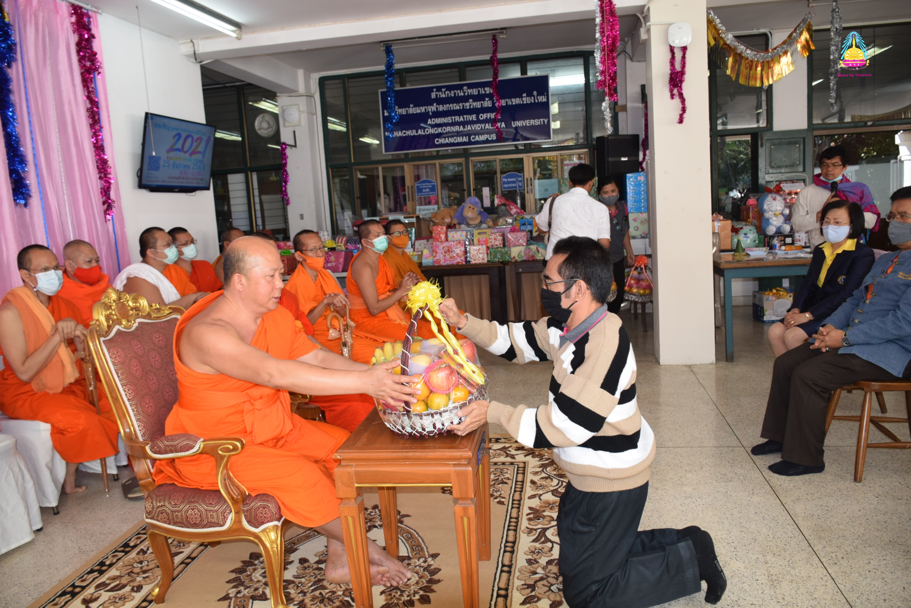 มหาวิทยาลัยมหาจุฬาลงกรณราชวิทยาลัย วิทยาเขตเชียงใหม่ จัดงานส่งท้ายปีเก่าวิถีไทยต้อนรับปีใหม่วิถีพุทธ ประจำปี ๒๕๖๓ มีพระวิมลมุนี รองอธิการบดี เป็นประธาน ในโอกาสเดียวกัน นางสาวปาฏิหาริย์ มังคลาภรณ์ นายกก่อตั้งสโมสรไลออนส์ราชพฤกษ์ พร้อมคณะถวายแว่นตา จำนวน ๑๘๖ ชุด แด่รองอธิการบดี เพื่อนำไปมอบให้กับพระนิสิต มีผู้บริหาร คณาจารย์ เจ้าหน้าที่ วิทยาลัยสงฆ์ลำพูน โรงเรียนบาลีสาธิตศึกษา ร่วมงาน ณ บริเวณหน้าสำนักงาน มจร วิทยาเขตเชียงใหม่ อำเภอเมืองเชียงใหม่ จังหวัดเชียงใหม่ เมื่อ ๒๕ ธันวาคม ๒๕๖๓