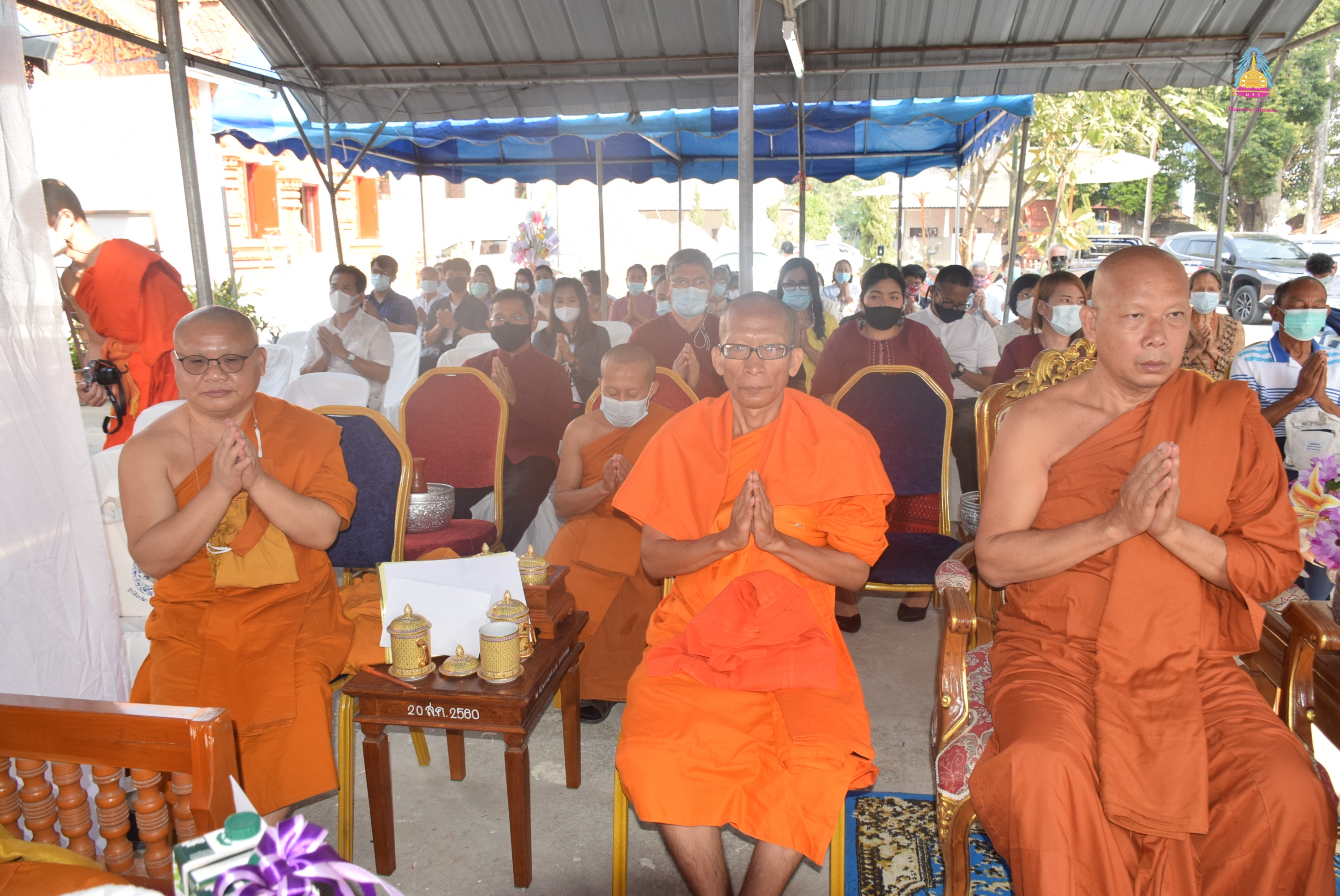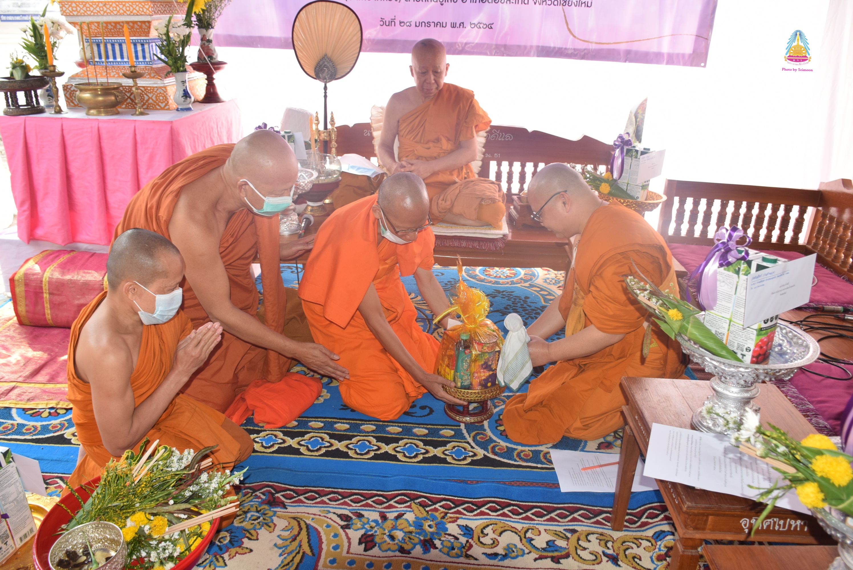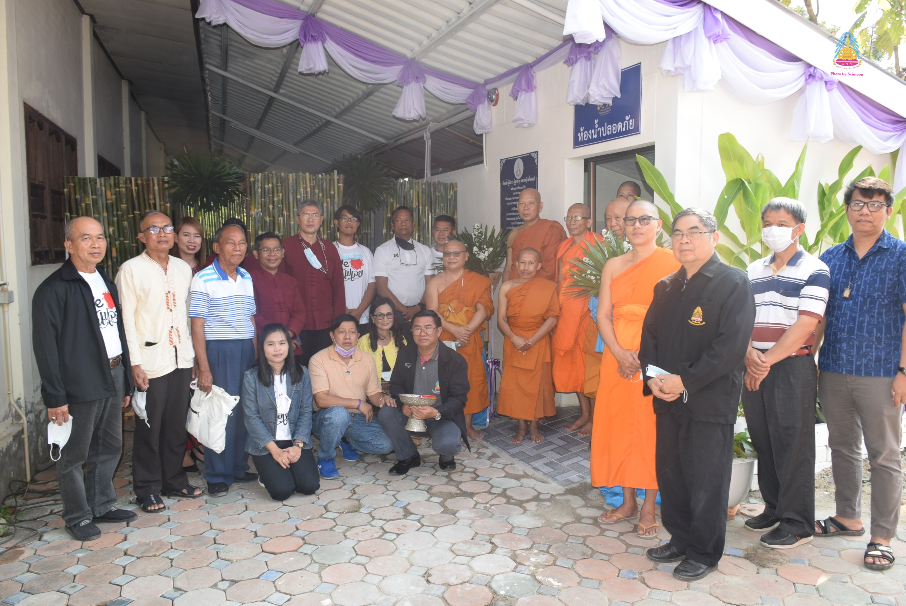 พระครูพิสุทธิ์ชยานุศาสก์ ผู้อำนวยการสำนักงานวิทยาเขต มจร. วิทยาเขตเชียงใหม่ พระนคร ปัญญาวชิโร เจ้าอาวาสวัดชัยสถิตย์ พร้อมคณะนักวิจัย คณะศรัทธาบ้านป่าเสร้าหลวง ถ่ายรูปเป็นที่ระลึกหลังจากทำบุญห้องน้ำปลอดภัย สำหรับผู้พิการ ผู้สูงอายุ และสตรีมีครรภ์ เป็นนวัตกรรมจากโครงการวิจัยเรื่อง “วัดงาม นามมงคล ” นวัตกรรมการจัดการแหล่งท่องเที่ยววัดนามมงคลตามแบบอารยสถาปัตย์ ในจังหวัดเชียงใหม่” ณ วัดชัยสถิตย์ ต.สันปูเลย อ.ดอยสะเก็ด จ.เชียงใหม่ เมื่อ ๒๘ มกราคม ๒๕๖๓