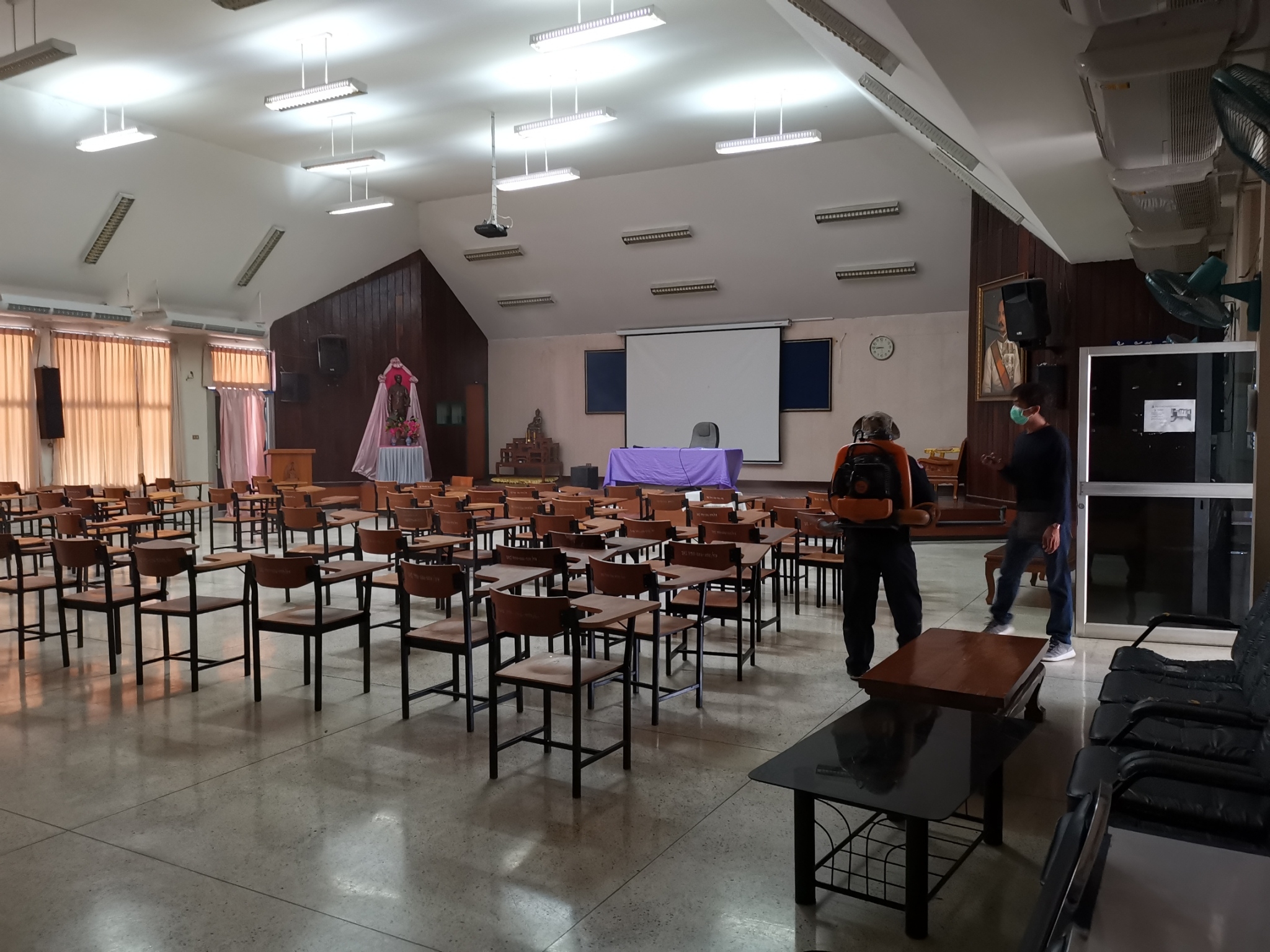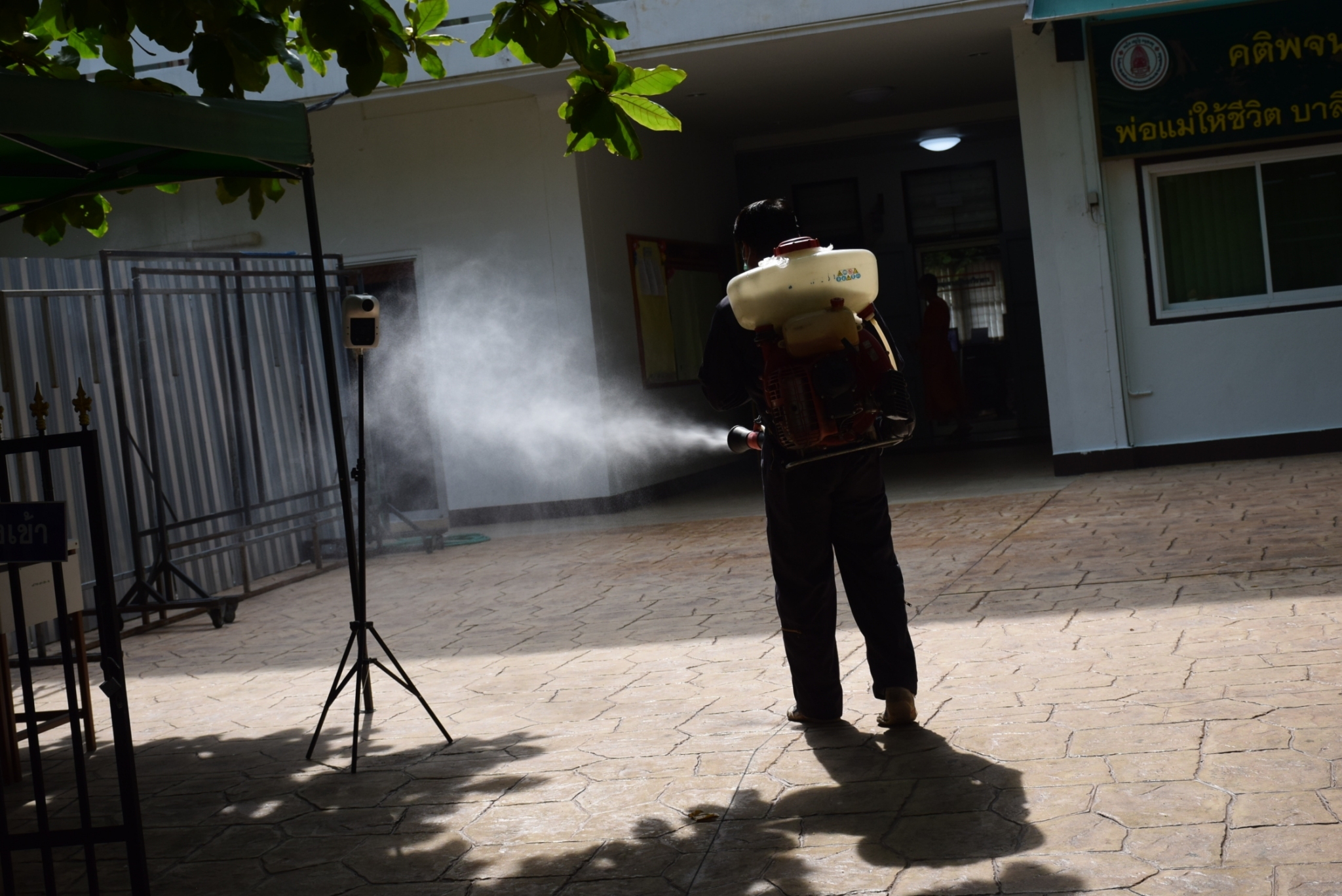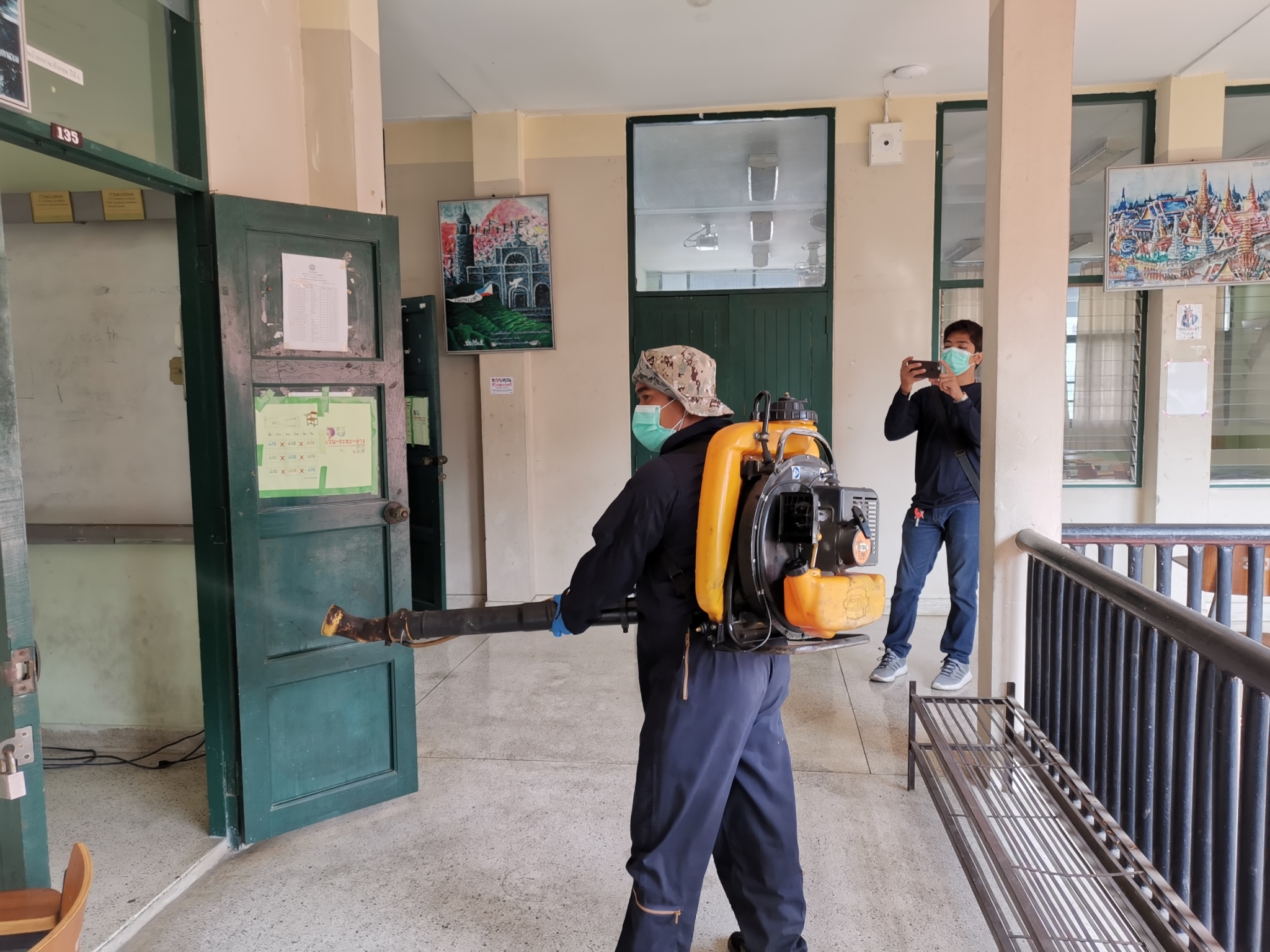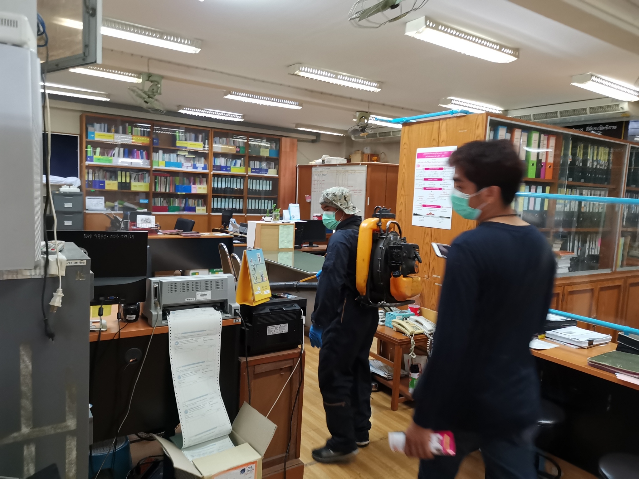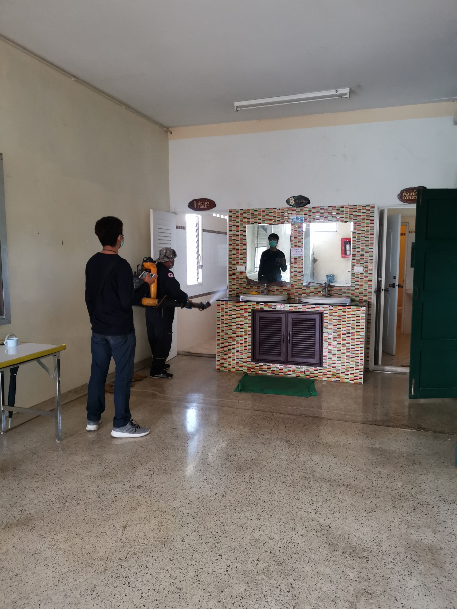 พ่นยาฆ่าเชื้อ ตามมาตรการป้องกันโรคติดเชื้อไวรัสโคโรนา – ๑๙ (COVID -19)