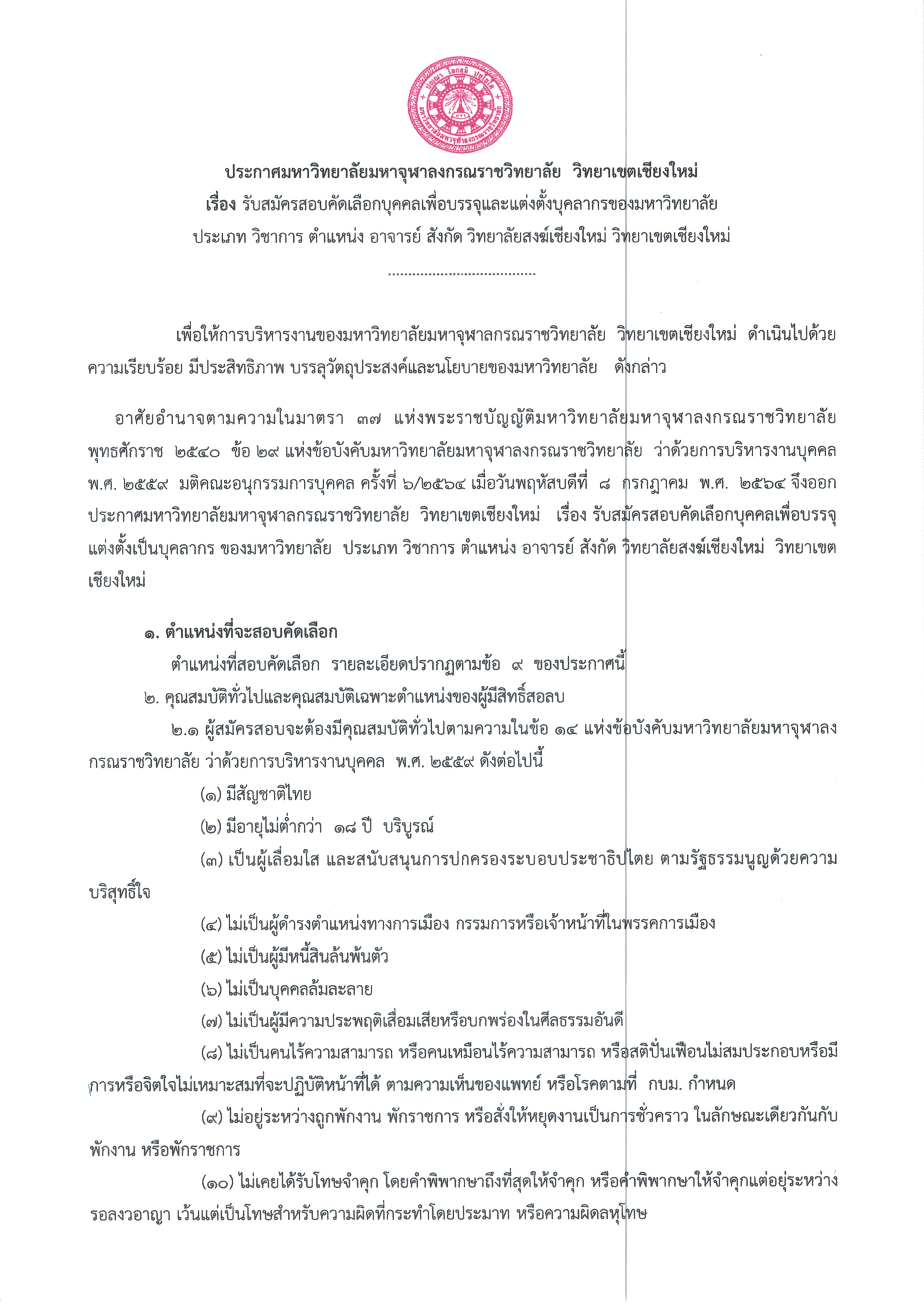 ประกาศมหาวิทยาลัยมหาจุฬาลงกรณราขวิทยาลัย วิทยาเขตเชียงใหม่