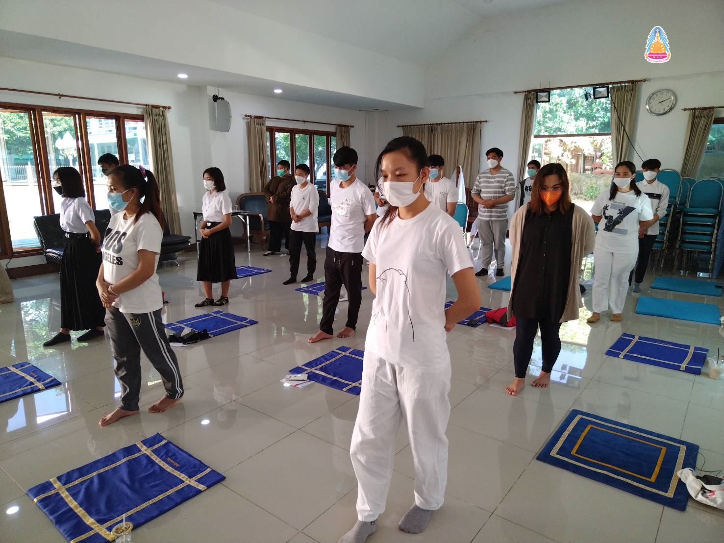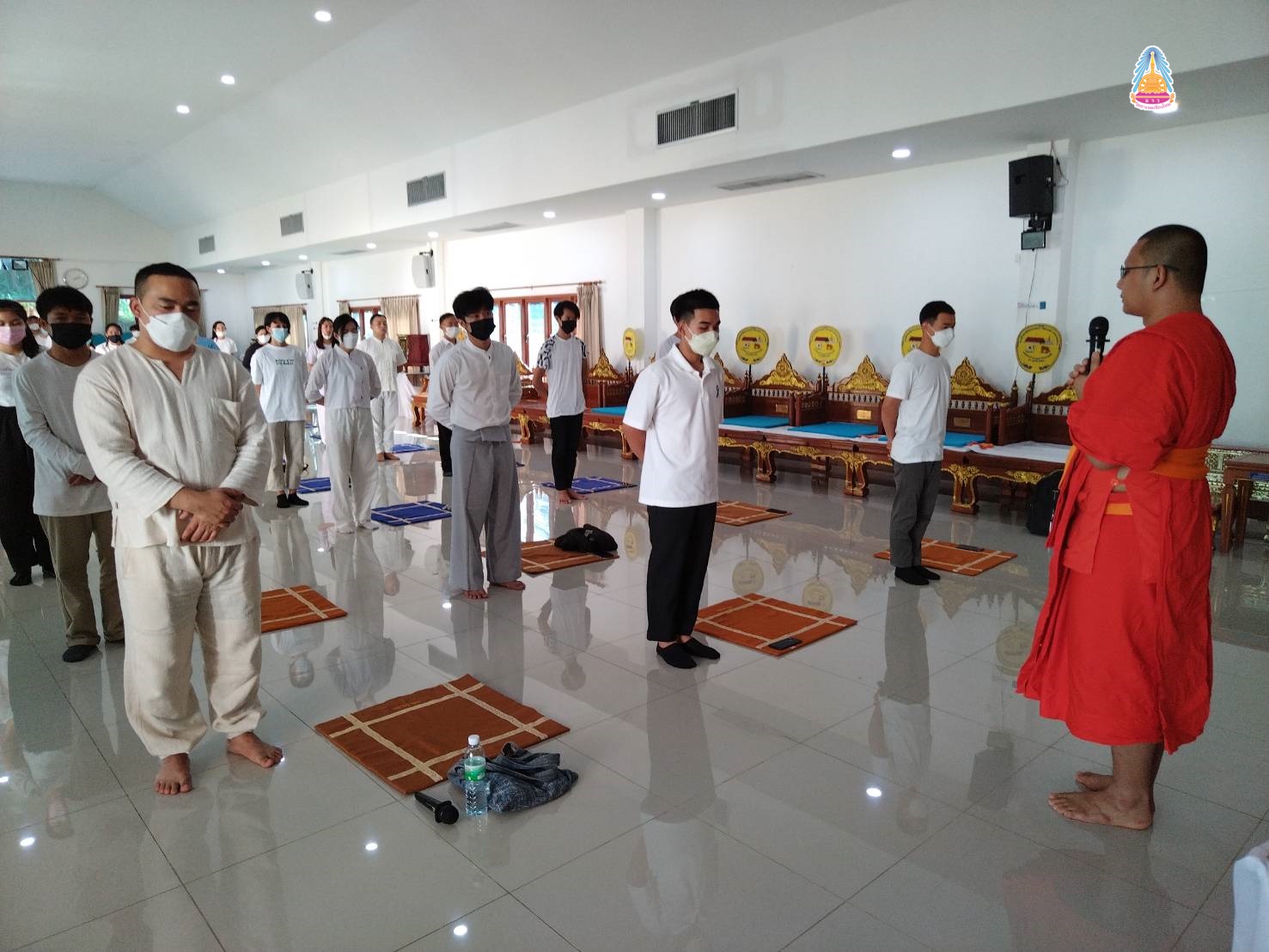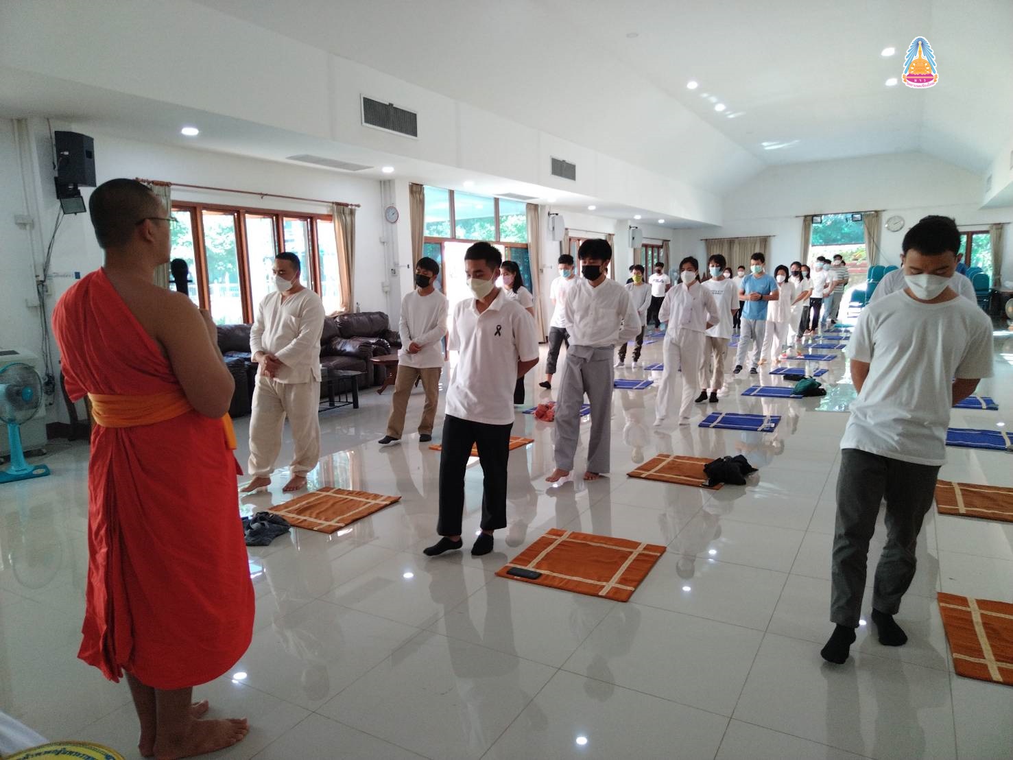 นิสิตคฤหัสถ์ ชั้นปีที่ ๔ ประจำปีการศึกษา ๒๕๖๔ มหาวิทยาลัยมหาจุฬาลงกรณราชวิทยาลัย วิทยาเขตเชียงใหม่ มีคณะมนุษยศาสตร์ สาขาวิชาภาษาอังกฤษ (EP ) นิสิตชั้นปีที่ ๑ - ๓ คณะสังคมศาสตร์ สาขาสังคมสงเคราะห์ ปฏิบัติวิปัสสนากัมมัฏฐาน พระวิปัสสนาจารย์ จำนวน ๒ รูป จากวัดร่ำเปิง (ตโปทาราม) อำเภอเมืองเชียงใหม่ รูปแบบวิถีชีวิตใหม่ (New Normal) ณ ศาลาปฏิบัติธรรม วัดสวนดอก พระอารามหลวง อำเภอเมืองเชียงใหม่ จังหวัดเชียงใหม่ เมื่อ ๒๖ ธันวาคม ๒๕๖๔