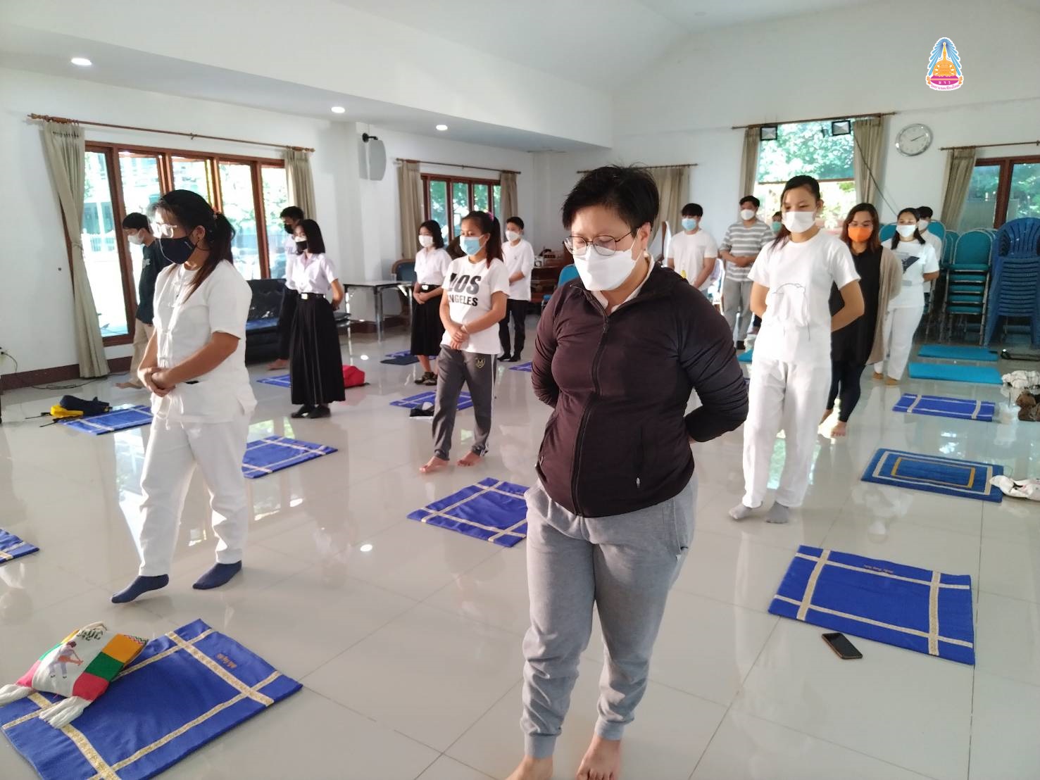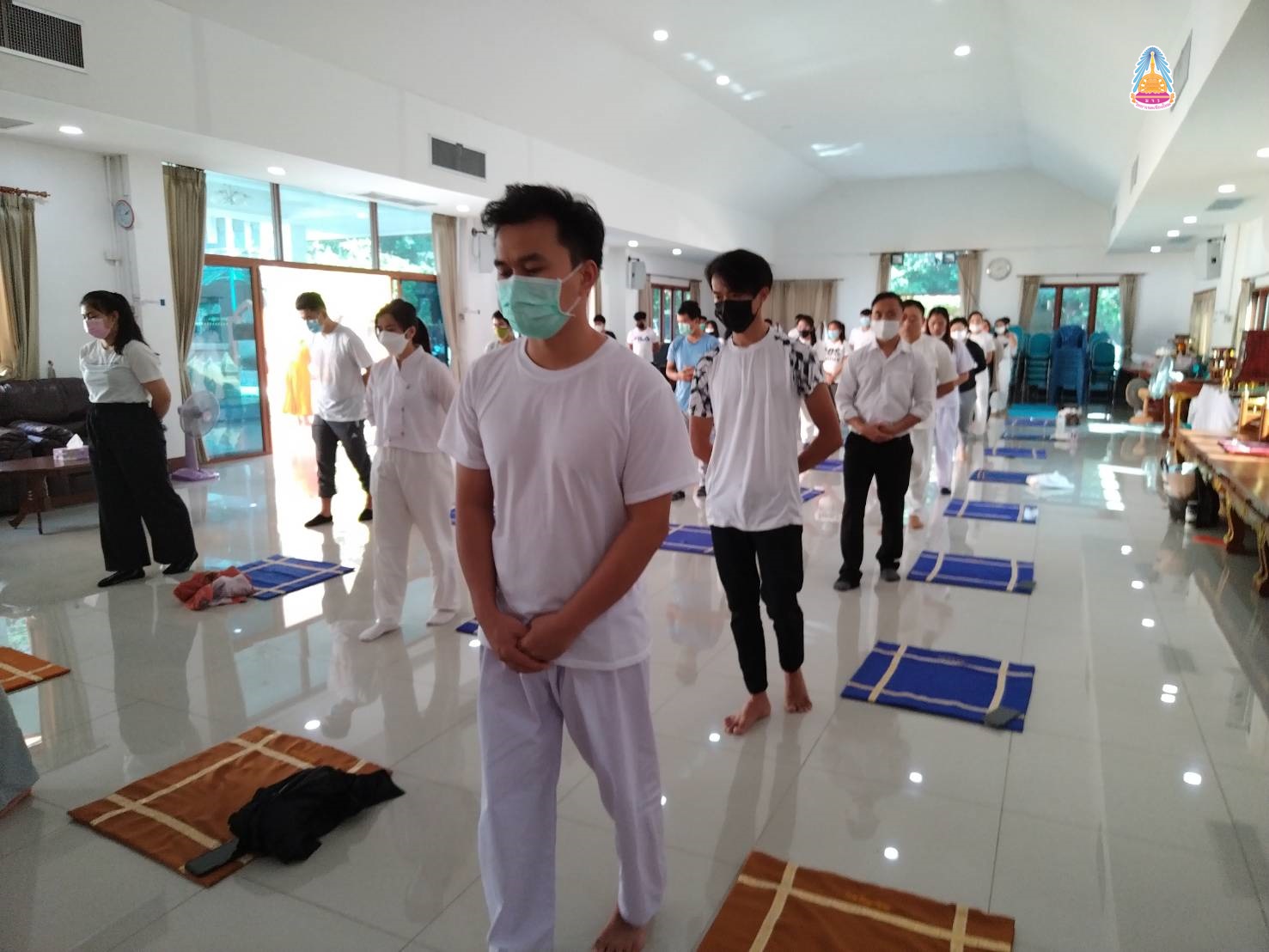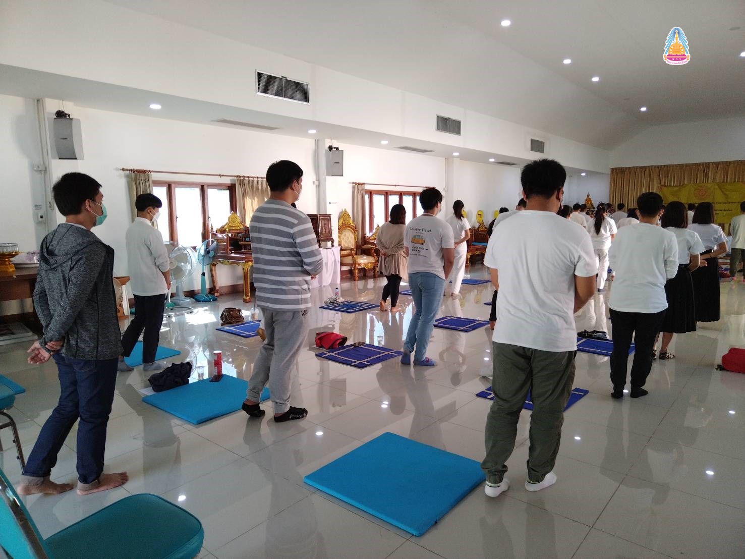 นิสิตคฤหัสถ์ ชั้นปีที่ ๔ ประจำปีการศึกษา ๒๕๖๔ มหาวิทยาลัยมหาจุฬาลงกรณราชวิทยาลัย วิทยาเขตเชียงใหม่ มีคณะมนุษยศาสตร์ สาขาวิชาภาษาอังกฤษ (EP ) นิสิตชั้นปีที่ ๑ - ๓ คณะสังคมศาสตร์ สาขาสังคมสงเคราะห์ ปฏิบัติวิปัสสนากัมมัฏฐาน พระวิปัสสนาจารย์ จำนวน ๒ รูป จากวัดร่ำเปิง (ตโปทาราม) อำเภอเมืองเชียงใหม่ รูปแบบวิถีชีวิตใหม่ (New Normal) ณ ศาลาปฏิบัติธรรม วัดสวนดอก พระอารามหลวง อำเภอเมืองเชียงใหม่ จังหวัดเชียงใหม่ เมื่อ ๒๖ ธันวาคม ๒๕๖๔