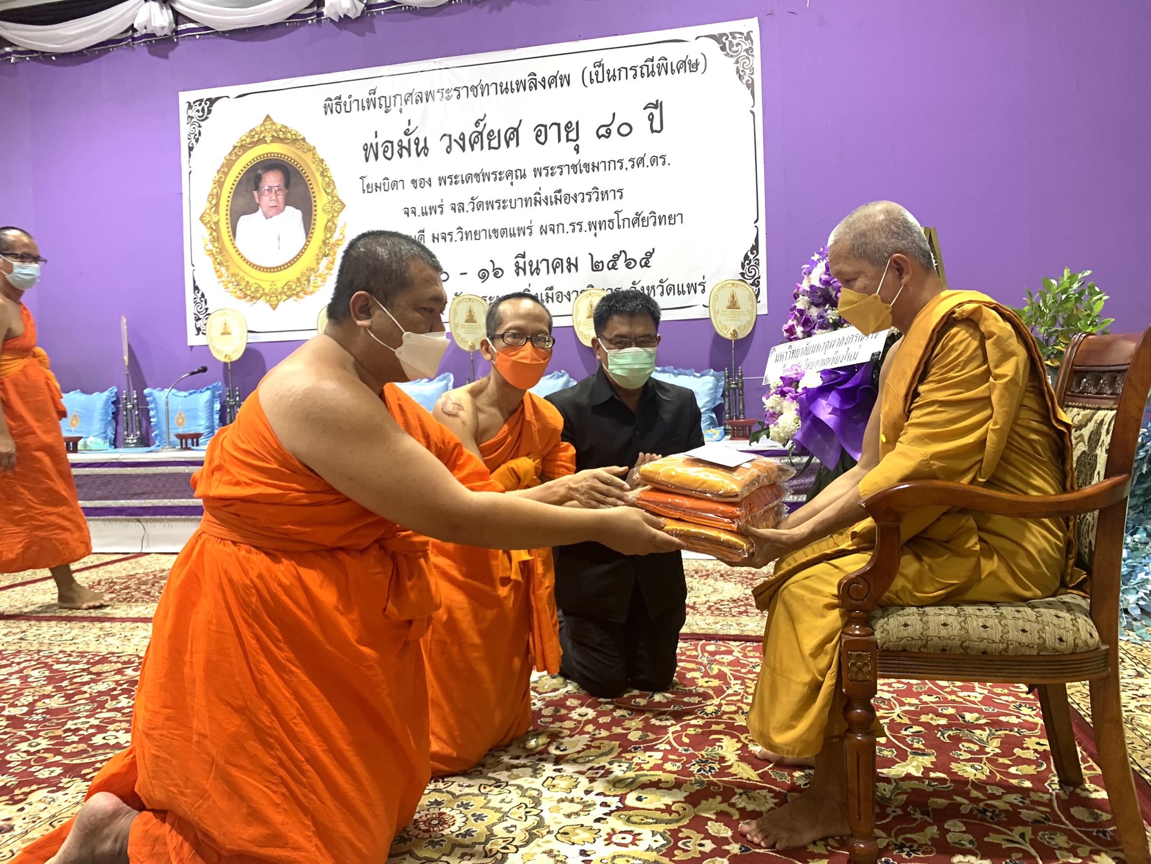 พระวิมลมุนี รองอธิการบดี วิทยาเขตเชียงใหม่ มอบหมาย ให้พระครูพิสุทธิชยานุศาสก์ ผู้อำนวยการสำนักงานวิทยาเขตเชียงใหม่ มหาวิทยาลัยมหาจุฬาลงกรณราชวิทยาลัย วิทยาเขตเชียงใหม่ พร้อมคณะฯ เป็นตัวแทน พร้อมผู้บริหาร คณาจารย์ เจ้าหน้าที่ ร่วมทำบุญงานบำเพ็ญกุศลพระราชทานเพลิงศพ คุณพ่อมั่น วงศ์ยศ โยมบิดา พระราชเขมากร,รศ.ดร.รองอธิการบดี วิทยาเขตแพร่ จ.แพร่ เจ้าคณะจังหวัดแพร่ และเจ้าอาวาสวัดพระบาทมิ่งเมือง วรวิหาร ณ วัดพระบาทมิ่งเมือง วรวิหาร อ.เมือง จ.แพร่ เมื่อ ๑๕ มีนาคม ๒๕๖๕