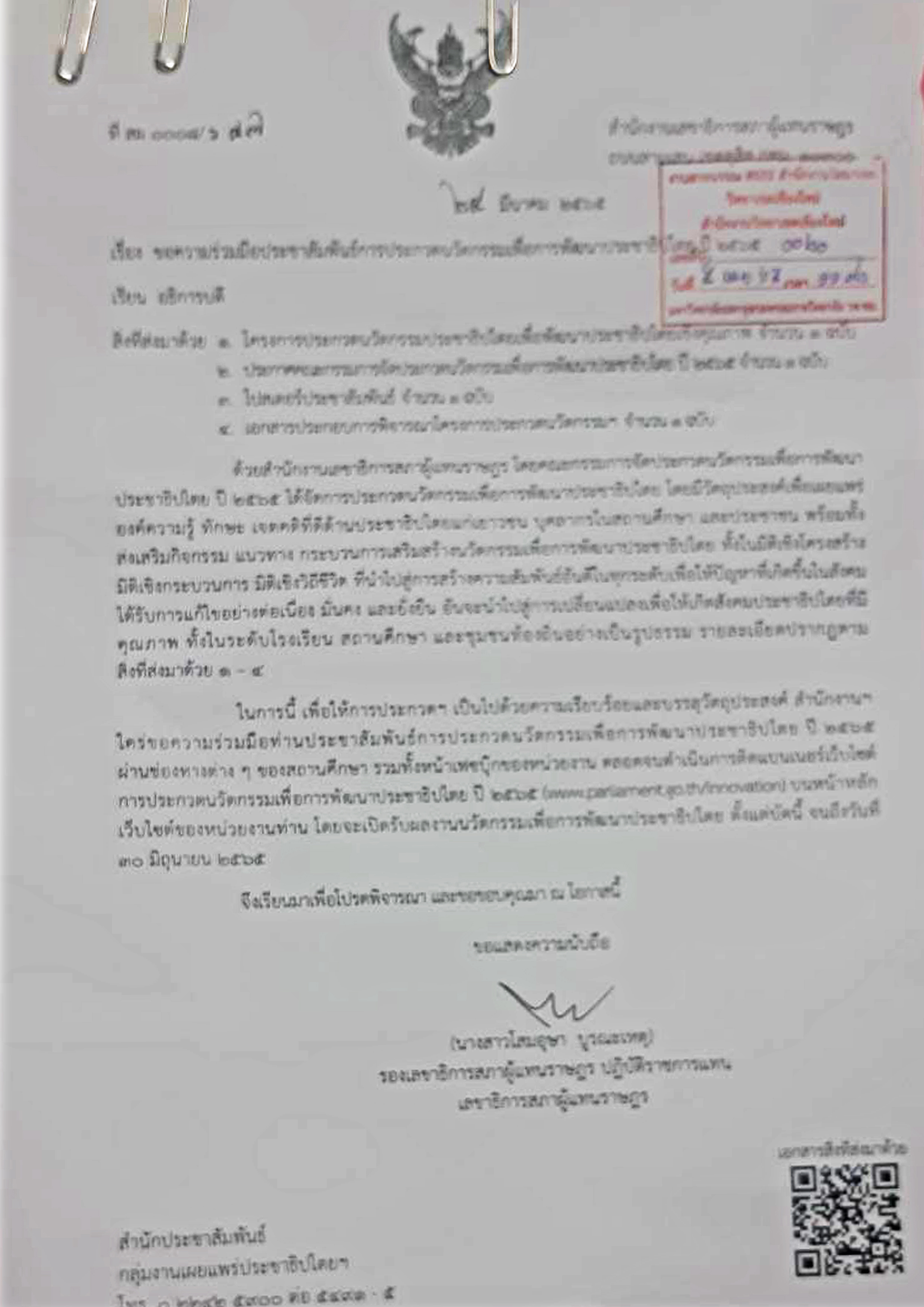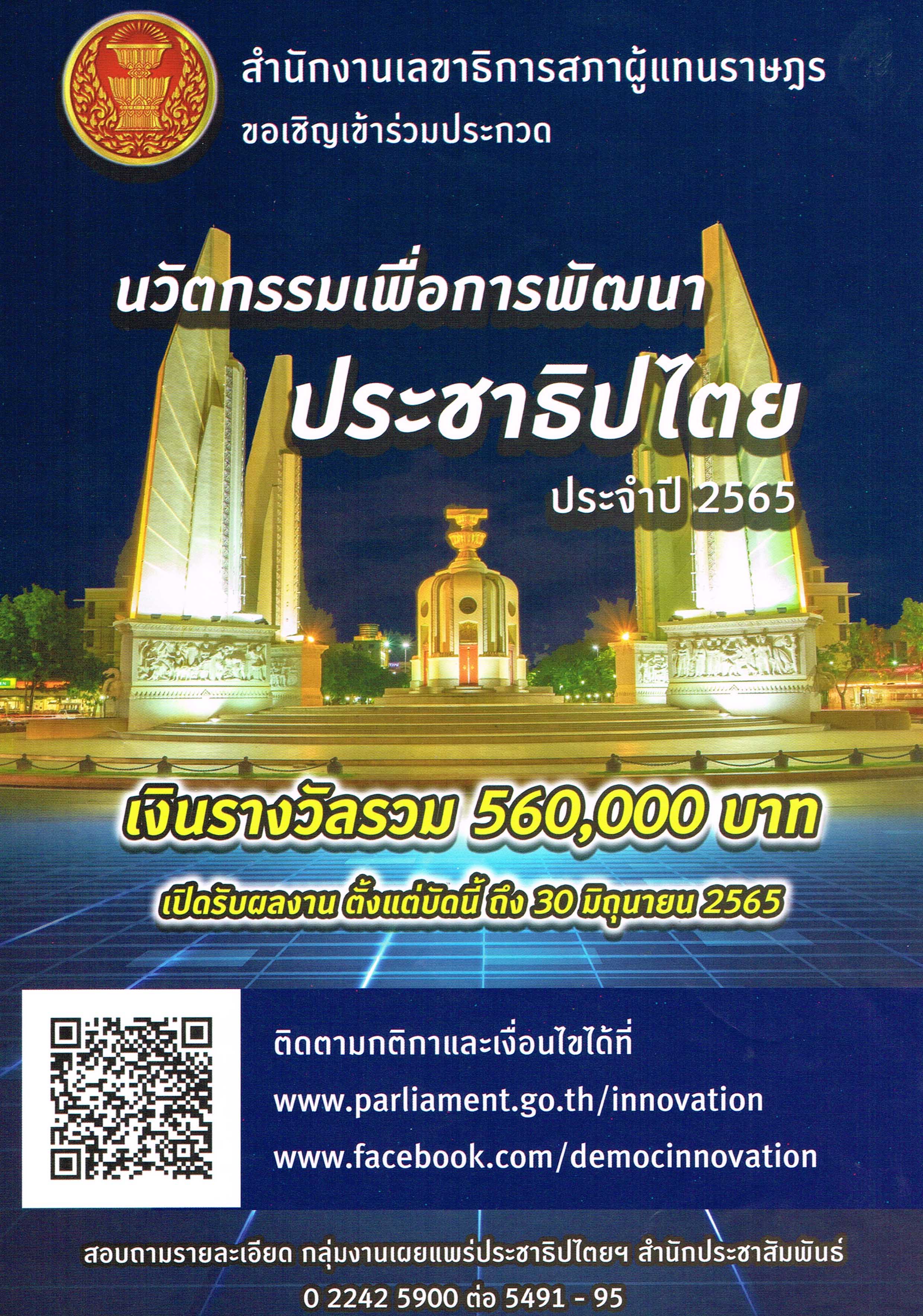 ขอเชิญเข้าร่วมประกวด นวัตกรรมเพื่อนการพัฒนาประชาธิปไตย ปจะจำปี 2565