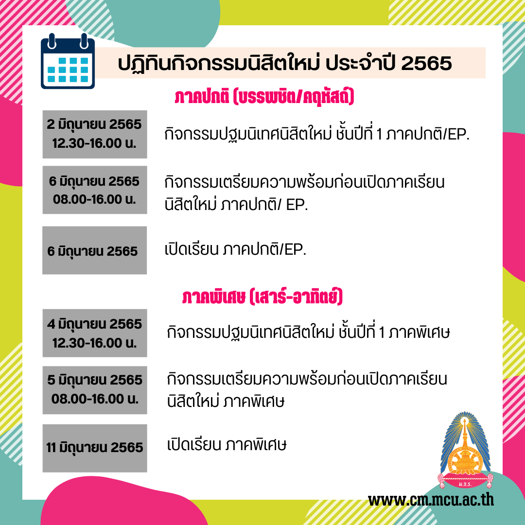 ปฏิทินกิจกรรมนิสิตใหม่ประจำปี 2565