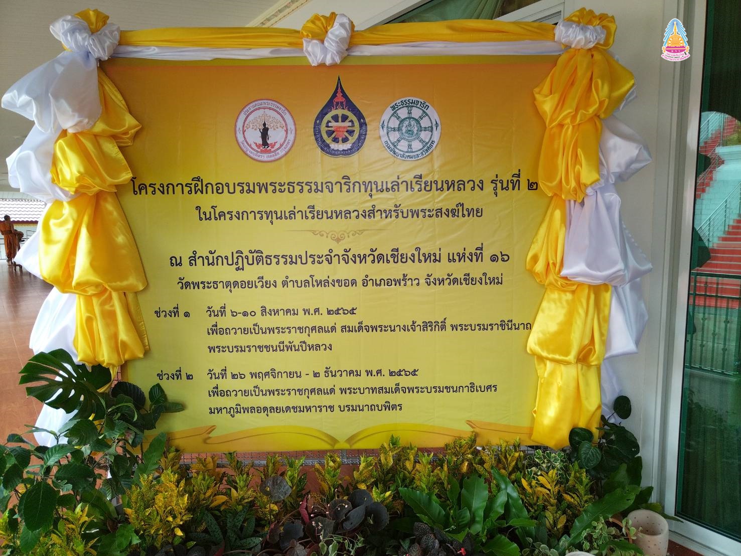 พระเดชพระคุณพระธรรมวชิรมุนี กรรมการมหาเถรสมาคม,เจ้าคณะกรุงเทพมหานคร เป็นประธานเปิดโครงการฝึกอบรมพระธรรมจาริกทุนเล่าเรียนหลวง รุ่นที่ ๒ ในโครงการทุนเล่าเรียนหลวงสำหรับพระสงฆ์ไทย ช่วงที่ ๑ ระหว่างวันที่ ๖ – ๑๐ สิงหาคม ๒๕๖๕ และบรรยายพิเศษ เพื่อถวายเป็นพระราชกุศลแด่ สมเด็จพระนางเจ้าสิริกิติ์ พระบรมราชินีนาถ พระบรมราชชนนีพันปีหลวง โดยมีพระเทพกิตติเวที ประธานโครงการพระธรรมจารริก,พระเทพปริยัติ เจ้าคณะจังหวัดเชียงใหม่,พระอุดมบัณฑิต,พระวิมลมุนี รองอธิการบดี พระครูพิสุทธิ์ชยานุศาสก์ ผู้อำนวยการสำนักงานวิทยาเขตเชียงใหม่ พร้อมคณะผู้บริหาร คณาจารย์ เจ้าหน้าที่ นิสิต มหาวิทยาลัยมหาจุฬาลงกรณราชวิทยาลัย โดยมีพระครูวรวรรณวิวัฒน์,ดร. เจ้าคณะตำบลโหล่องขอด เจ้าอาวาสวัดพระธาตุดอยเวียง กล่าวถวายรายงาน นายสด แดงเอียด บรรยายพิเศษ เรื่อง “ พระบรมราโชบายด้านการพัฒนาศักยภาพพระสงฆ์ไทย” มีหน่วยงานราชการ,องค์การปกครองส่วนท้องถิ่น พลังประชาชนร่วมโครงการ ภายใต้มาตรการป้องกันโรคโควิด-19 อย่างเคร่งครัด ณ สำนักปฏิบัติธรรมประจำจังหวัดเชียงใหม่ แห่งที่ ๑๖ วัดพระธาตุดอยเวียง ตำบลโหล่งขอด อำเภอพร้าว จังหวัดเชียงใหม่ ๖ สิงหาคม ๒๕๖๕