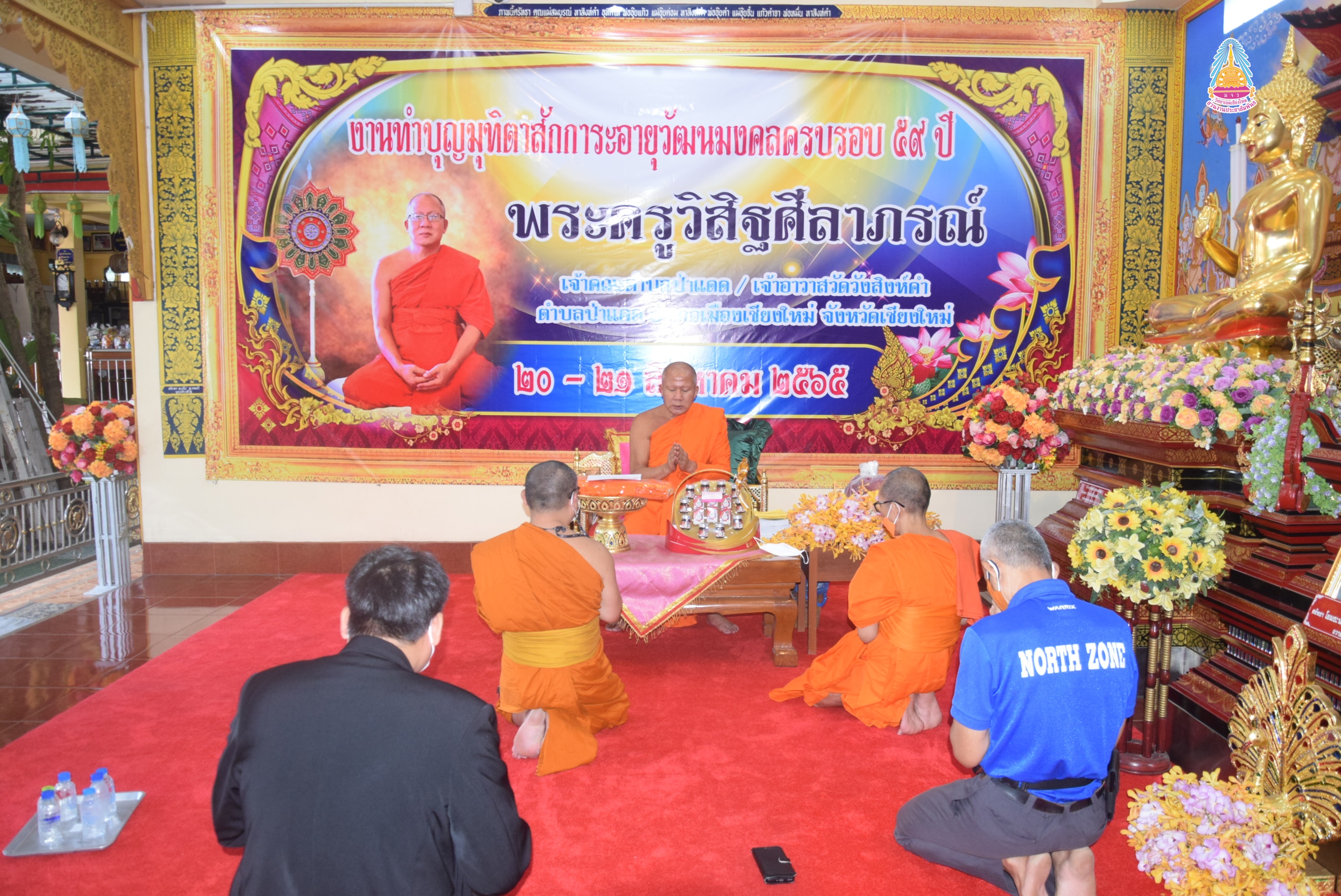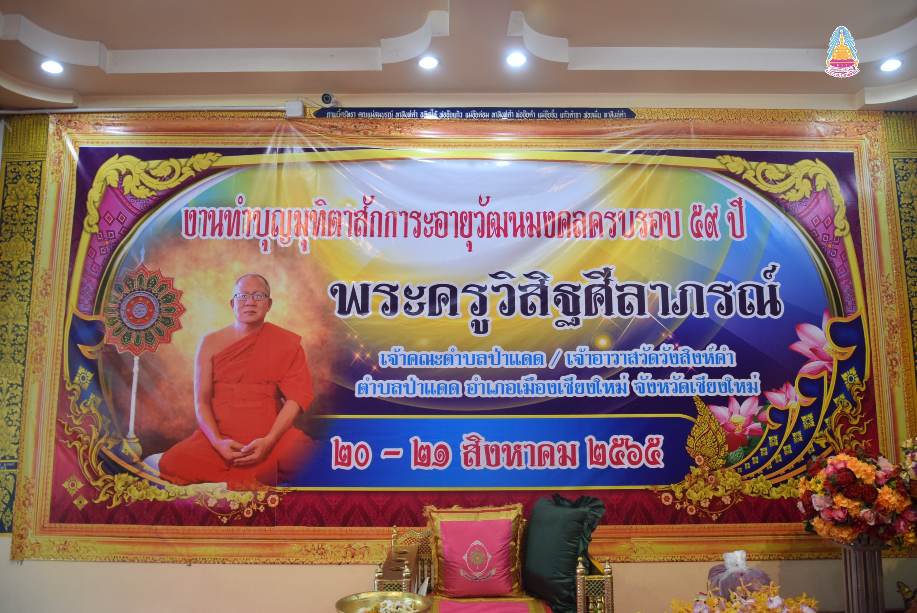 พระวิมลมุนี รักษาการแทนรองอธิการบดีวิทยาเขตเชียงใหม่ มอบหมายให้ พระครูพิสุทธิ์ชยานุศาสก์ ผู้อำนวยการสำนักงานวิทยาเขตเชียงใหม่ มหาวิทยาลัยมหาจุฬาลงกรณราชวิทยาลัย วิทยาเขตเชียงใหม่ พร้อมคณะ มุทิตาสักการะแด่ “พระครูวิสิฐศีลาภรณ์” (ประเสริฐ วิสุทฺธาจาโร) อายุวัฒนมงคล ๕๙ ปี พรรษา ๓๙ เจ้าคณะตำบลป่าแดด เจ้าอาวาสวัดสิงห์คำ ผู้ดำเนินรายการเทศน์ทางสถานีวิทยุ รายการมรดกธรรมกำเมือง เนื่องในโอกาสครบรอบคล้ายวันเกิด ณ วัดวังสิงห์คำ ตำบลป่าแดด อำเภอเมืองเชียงใหม่ จังหวัดเชียงใหม่ ๒๓ สิงหาคม ๒๕๖๕