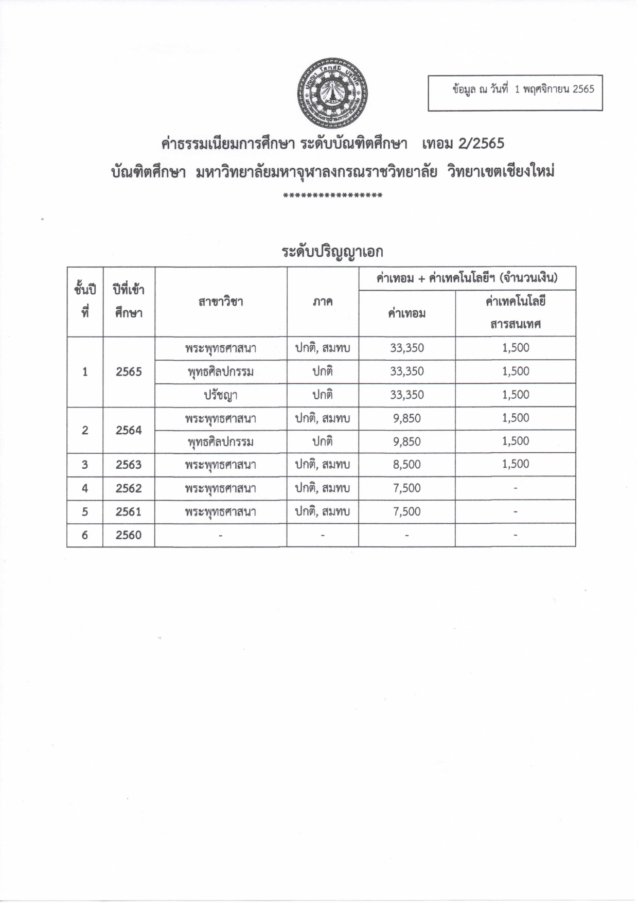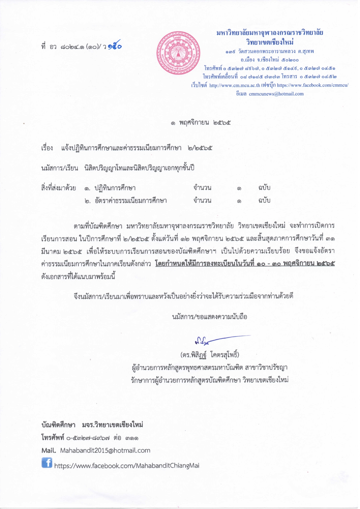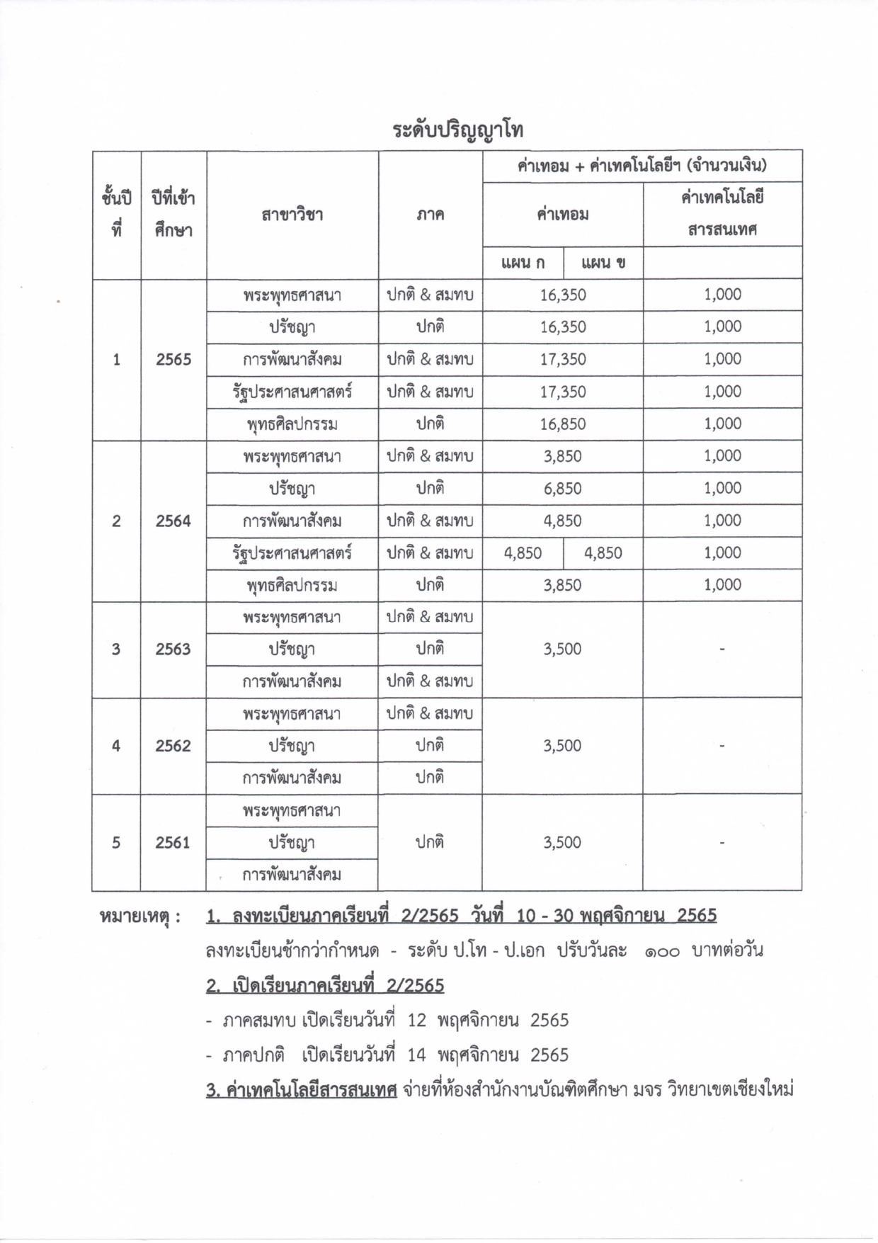 ปฏิทินการศึกษา และค่าธรรมเนียมการศึกษา ป.โท-ป.เอก
