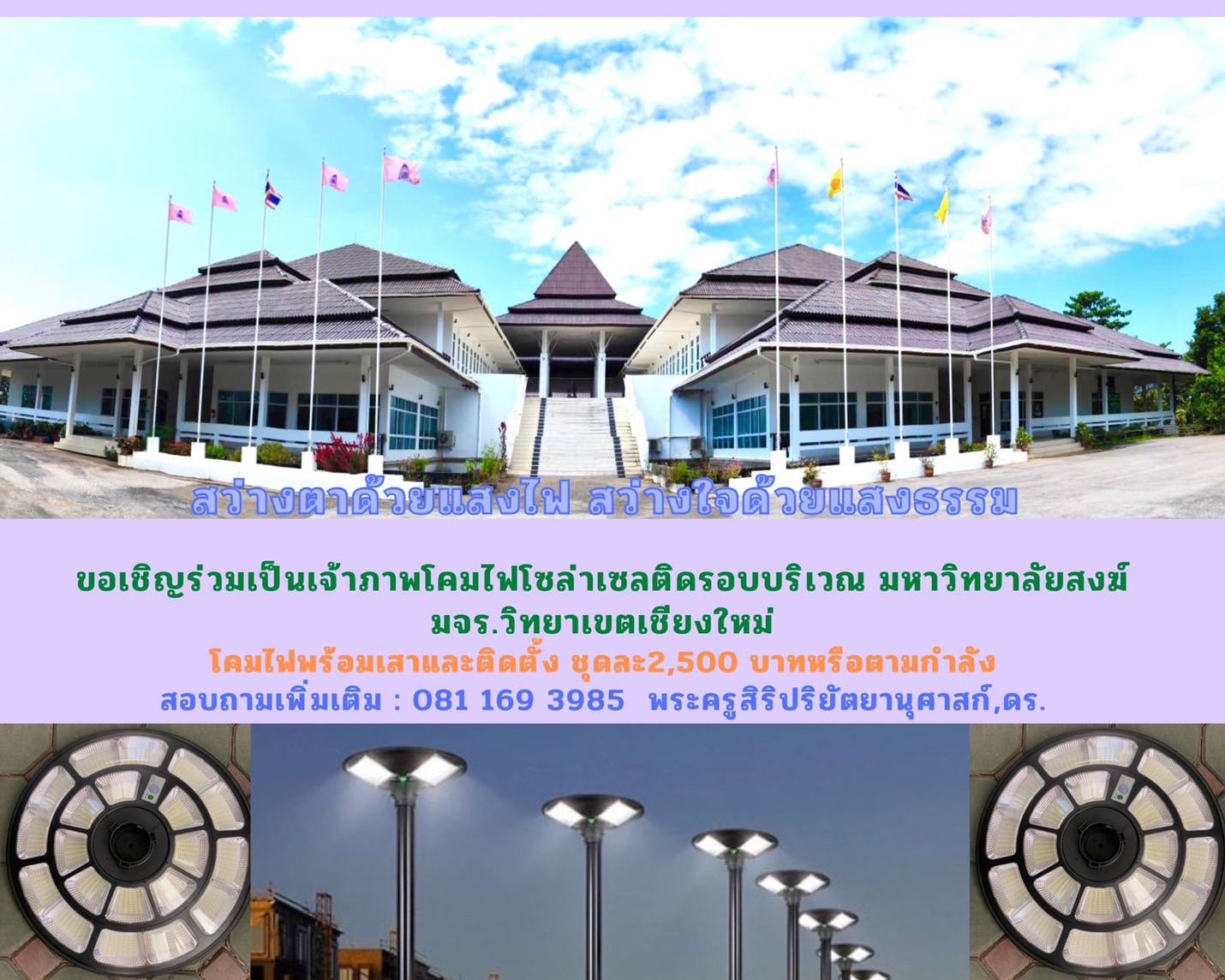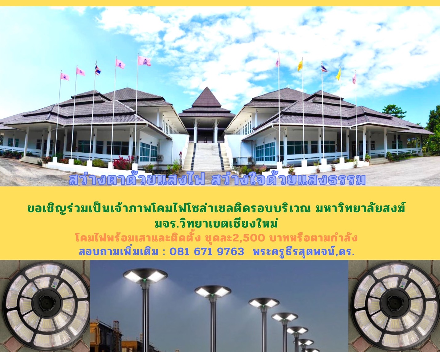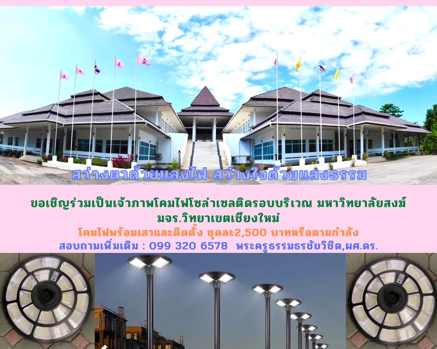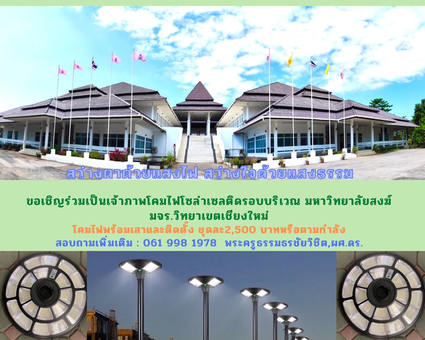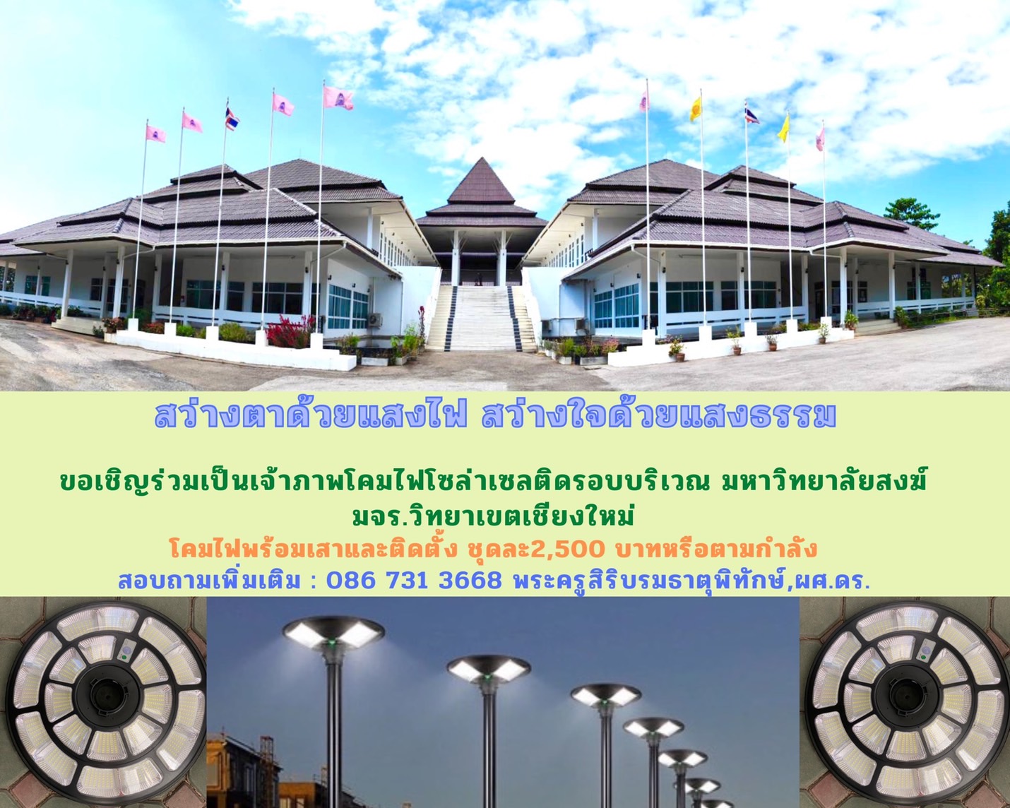 #ขอเชิญร่วมเป็นเจ้าภาพไฟโซล่าเซลติดรอบมหาวิทยาลัย มจร วิทยาเขตเชียงใหม่