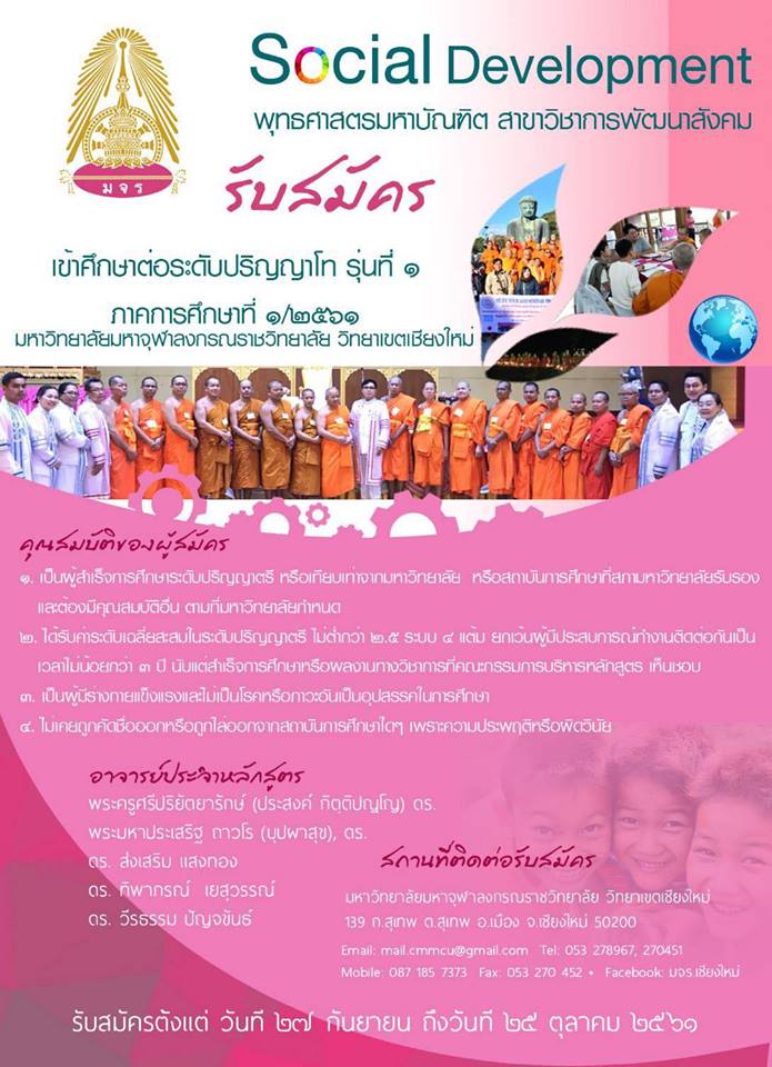 พุทธศาสตรมหาบัณฑิต สาขาวิชาการพัฒนาสังคม รับสมัครเข้าศึกษาต่อระดับปริญญาโท รุ่นที่ 1
