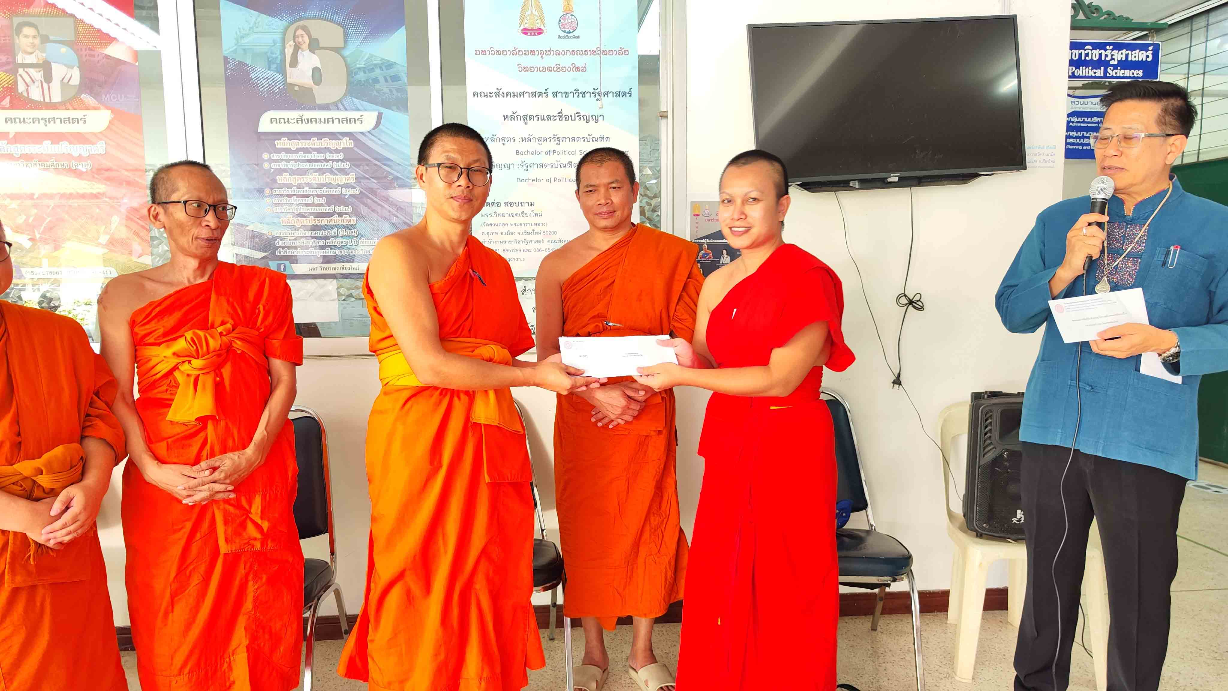 เมื่อวันที่ 24 พฤศจิกายน 2566 คณะผู้บริหาร คณาจารย์ เจ้าหน้าที่ มหาวิทยาลัยมหาจุฬาลงกรณราชวิทยาลัย วิทยาเขตเชียงใหม่ นำโดยพระครูสิริบรมธาตุพิทักษ์ ผศ.ดร รองอธิการบดี มจร วิทยาเขตเชียงใหม่ พร้อมด้วยคณาจารย์ บุคลากร ได้ร่วมแสดงความยินดีกับพระเธียรชัย จิรวฒฺทโน (ใบศรี) นักวิชาการศึกษา สำนักงานวิทยาลัยสงฆ์เชียงใหม่ ที่สามารถสอบบรรจุราชการครูผู้ช่วย เอกภาษาอังกฤษ สพป. เขต 3 ณ ลานเอนกประสงค์ หน้าห้องสำนักงานวิทยาเขตเชียงใหม่