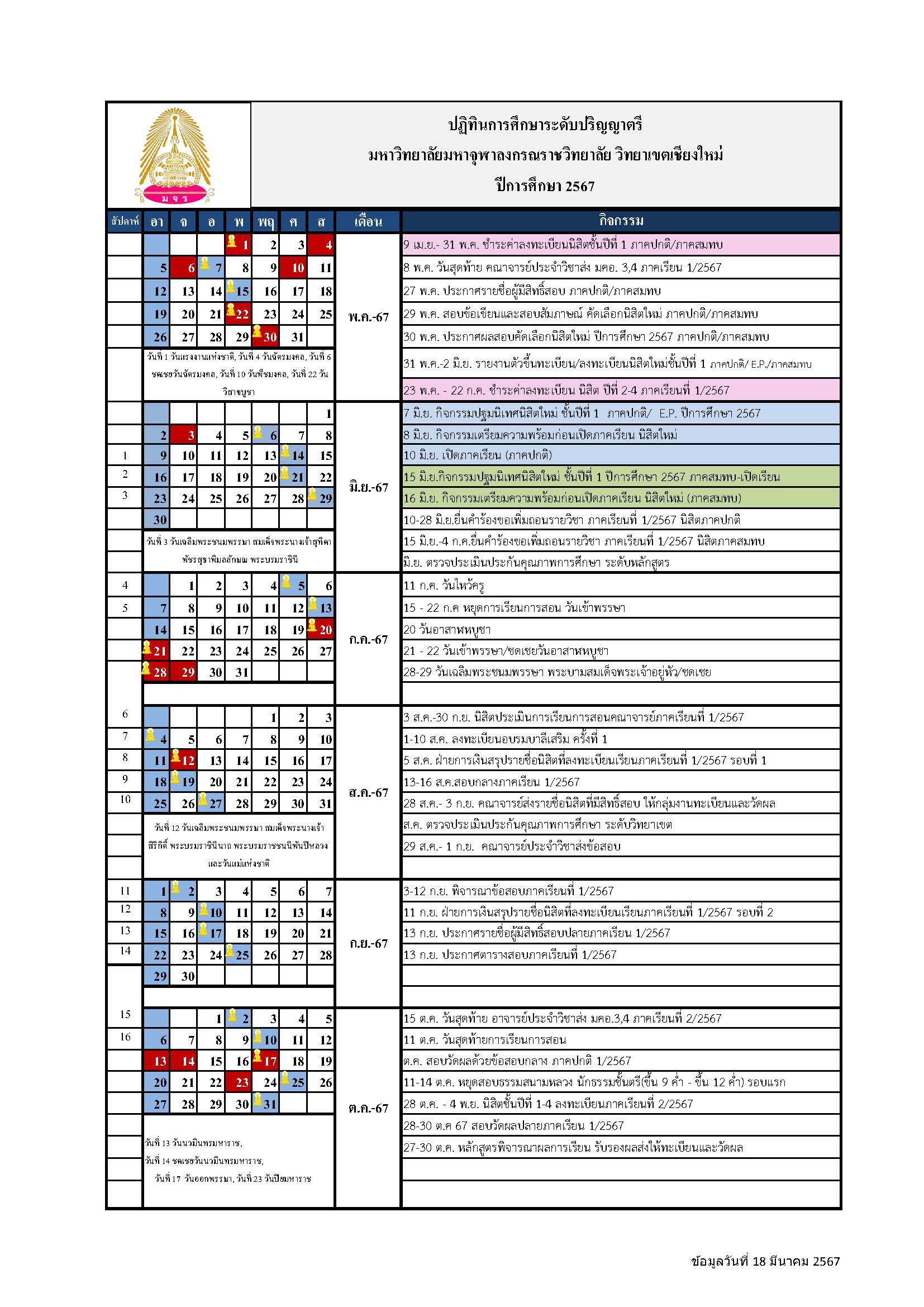 ปฏิทินการศึกษาระดับปริญญาตรี