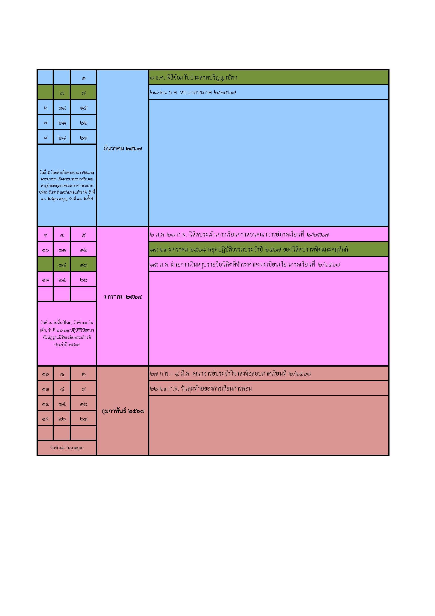 ปฏิทินการศึกษาระดับปริญญาตรี