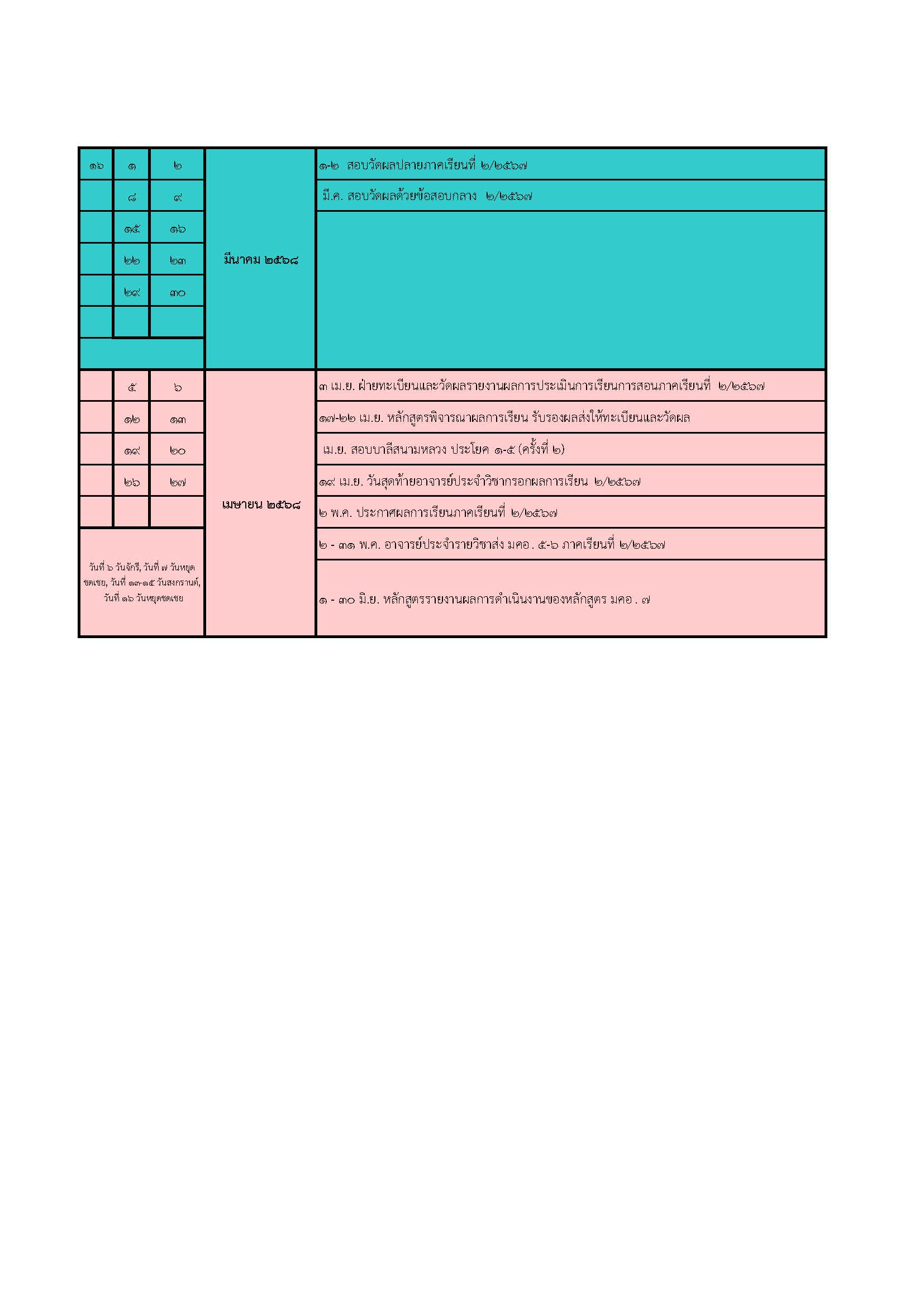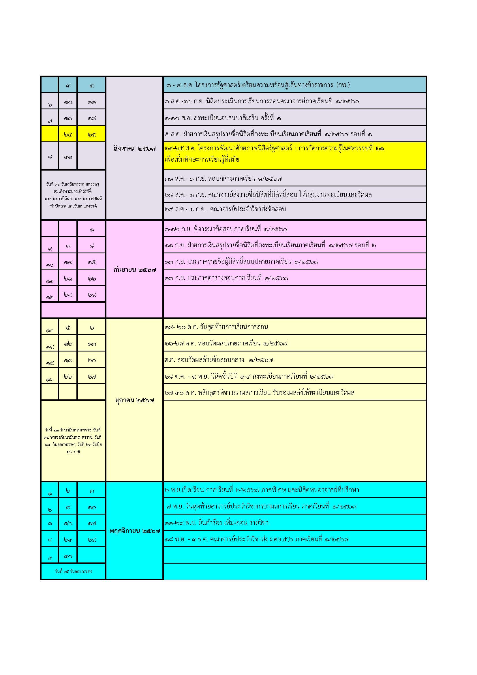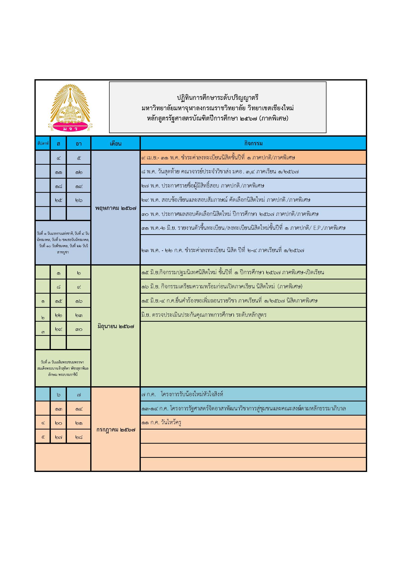 ปฏิทินการศึกษา หลักสูตรรัฐศาสตรบัณฑิตปีการศึกษา 2567(ภาคพิเศษ)