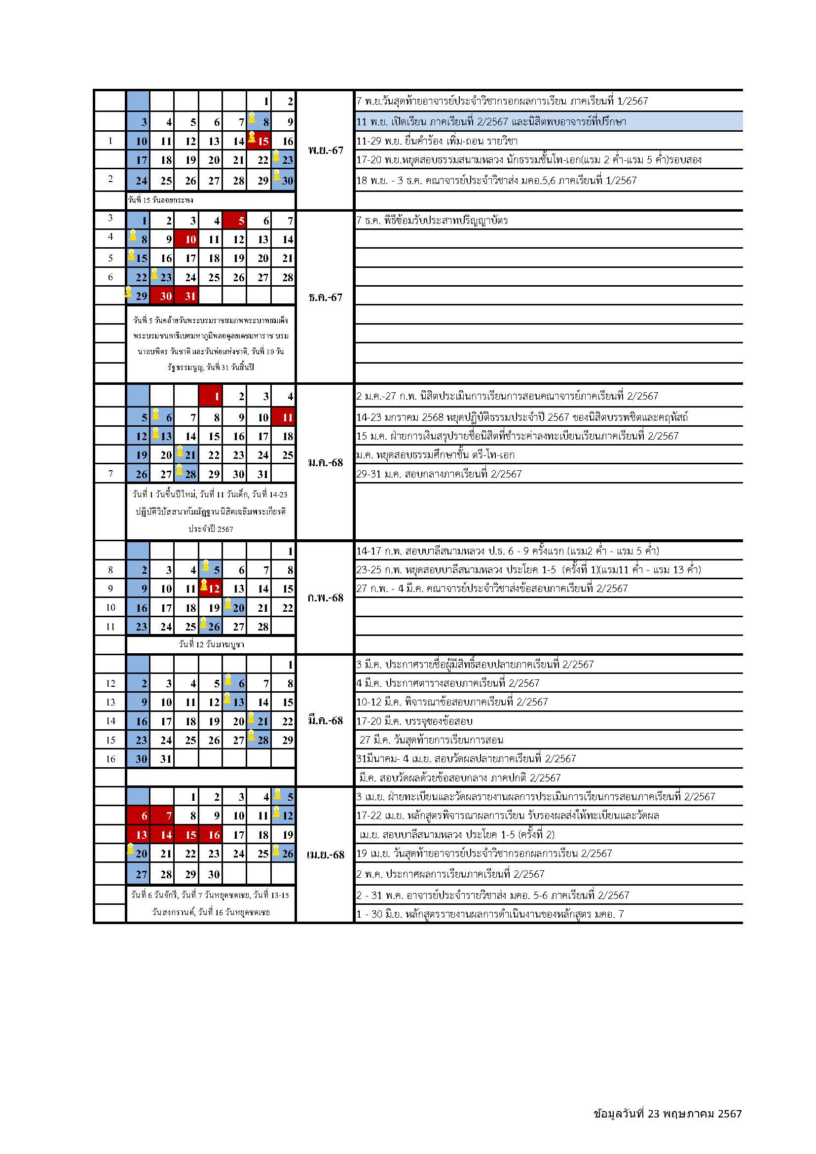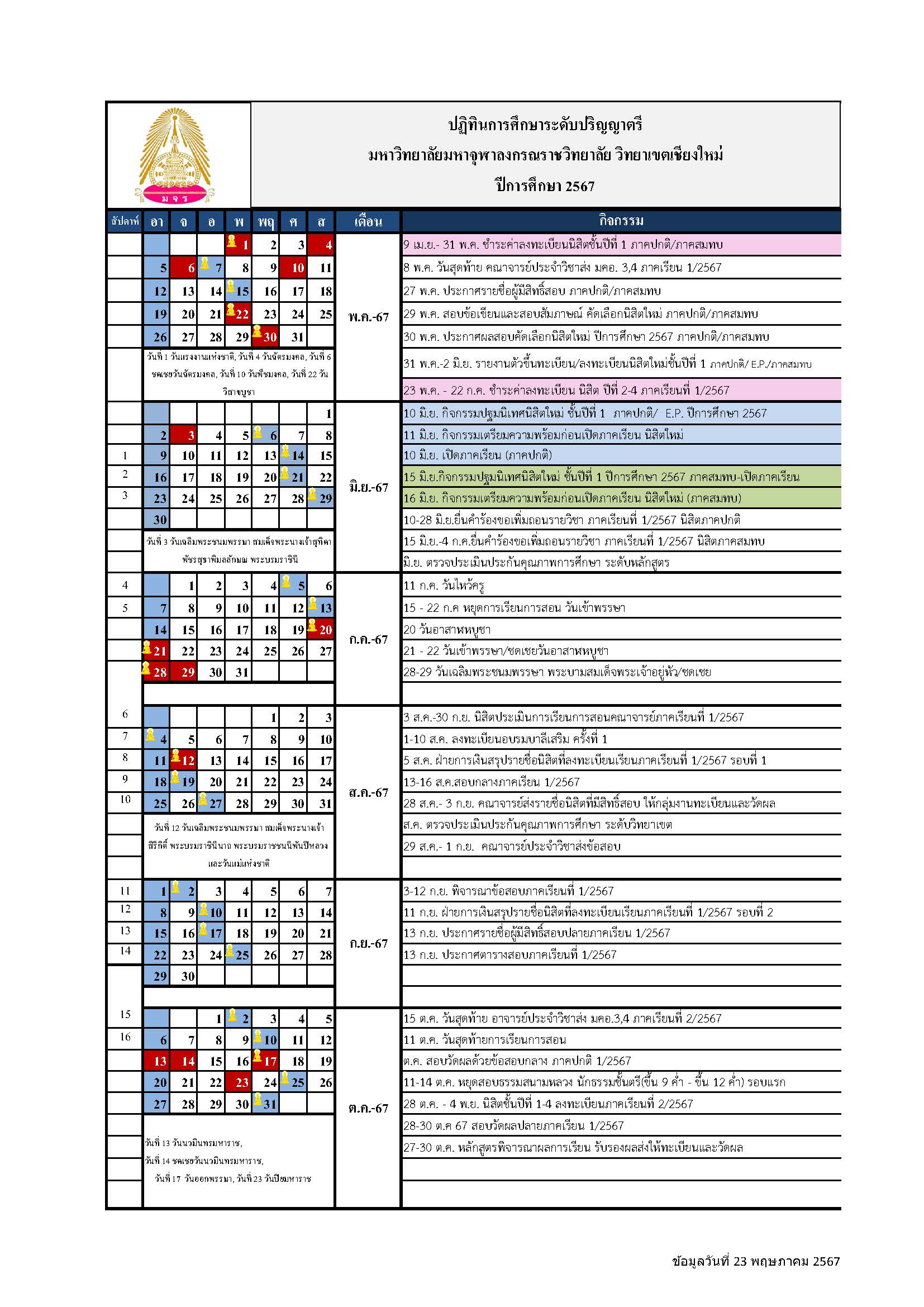 ปฏิทินการศึกษาระดับปริญญาตรี 2567