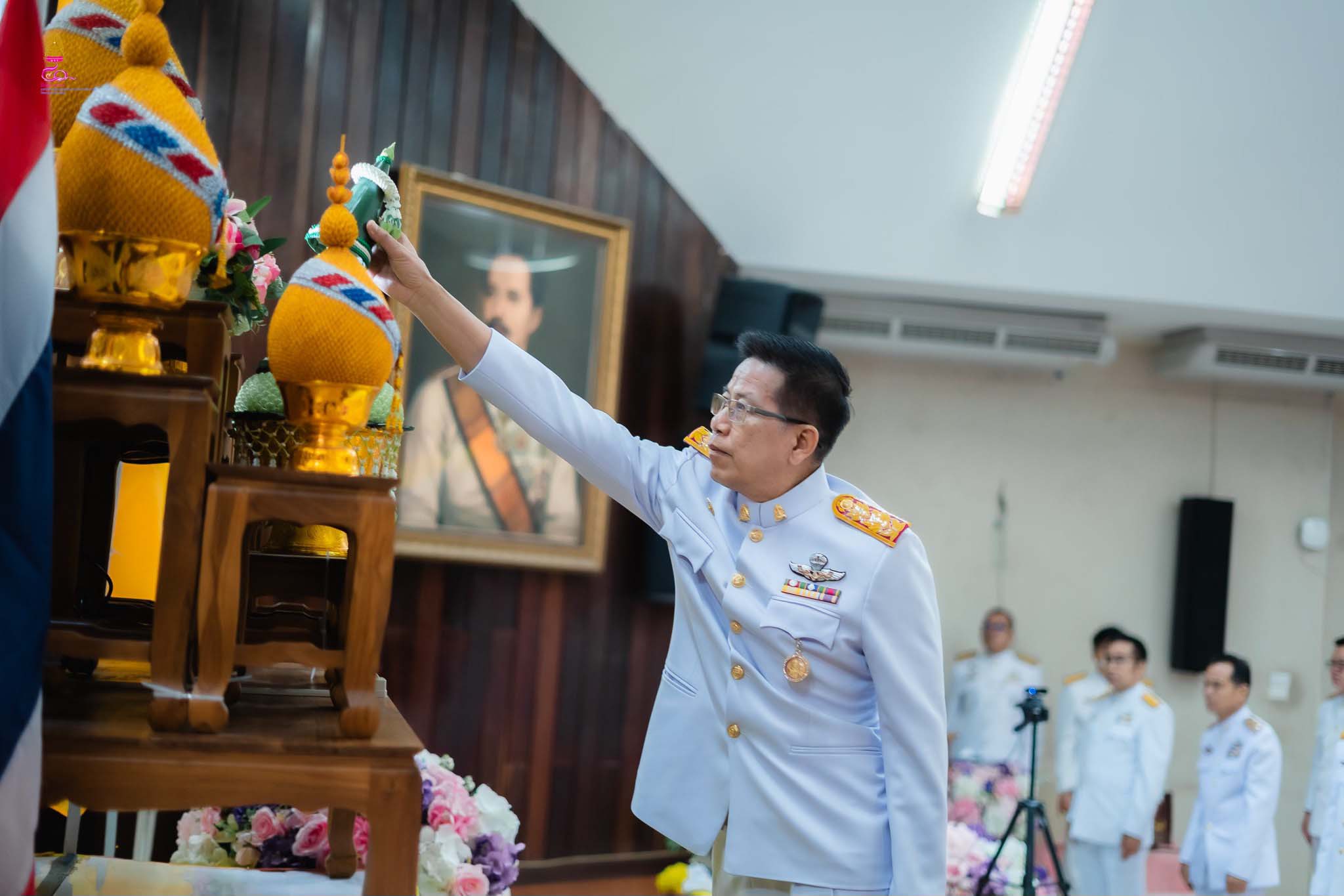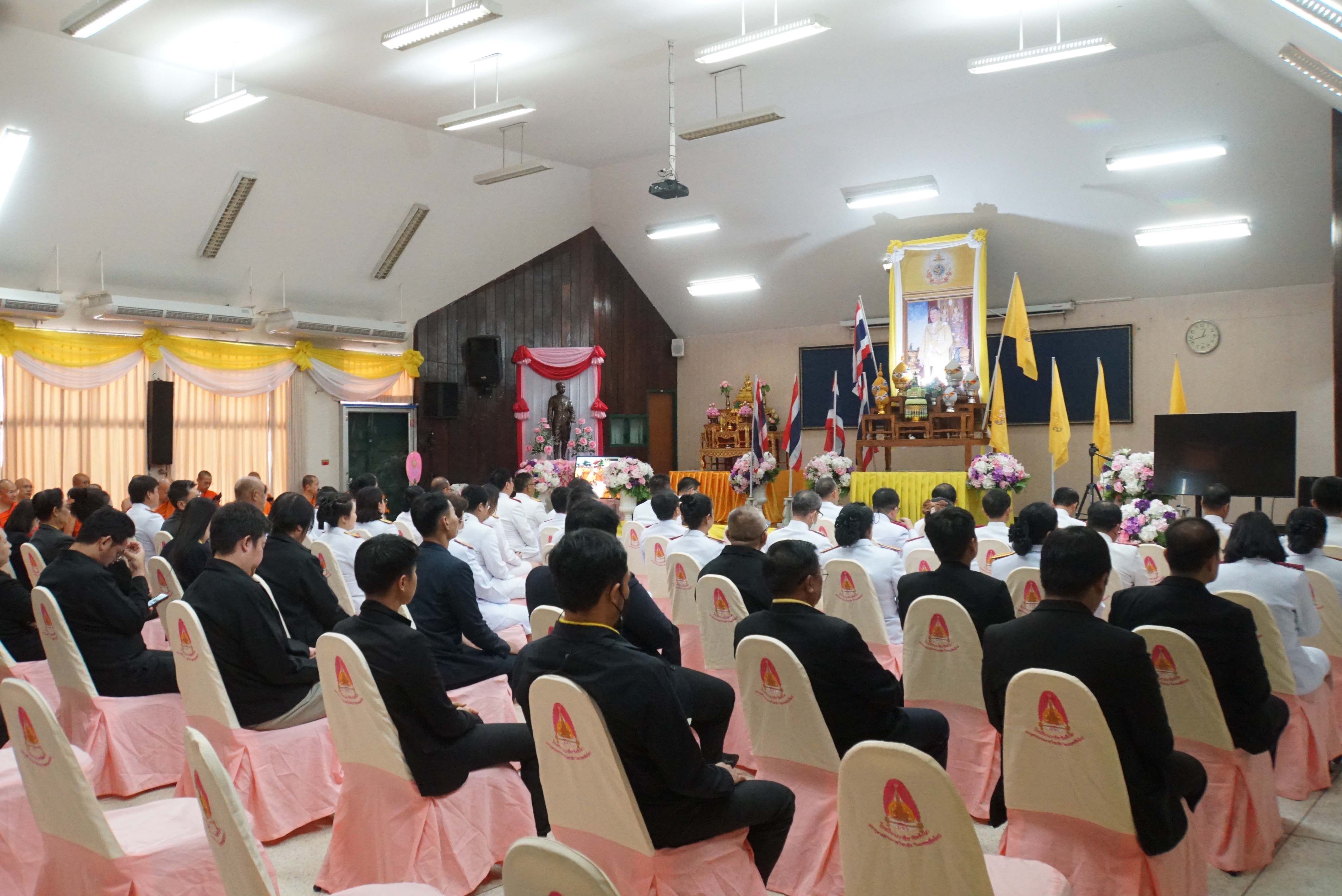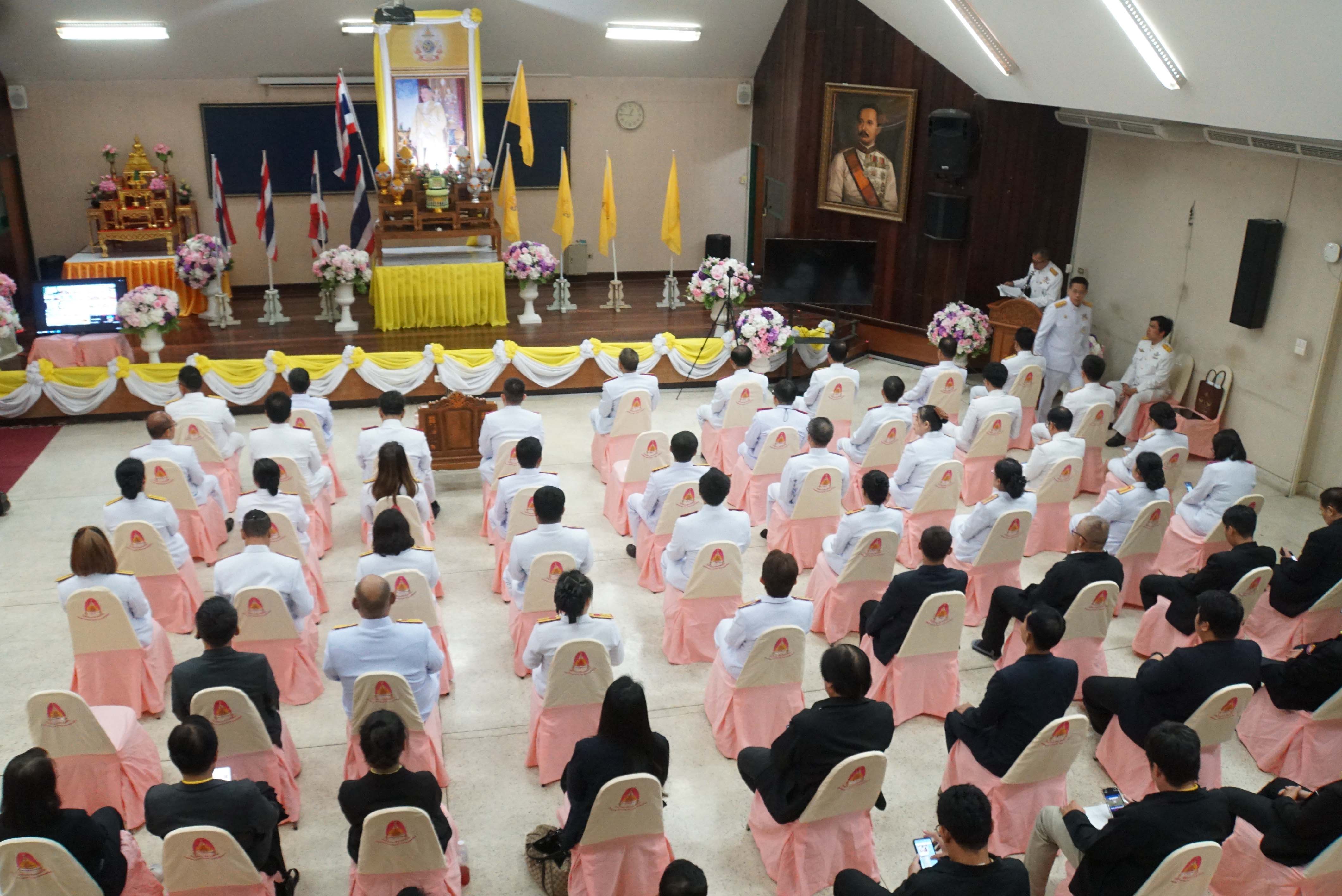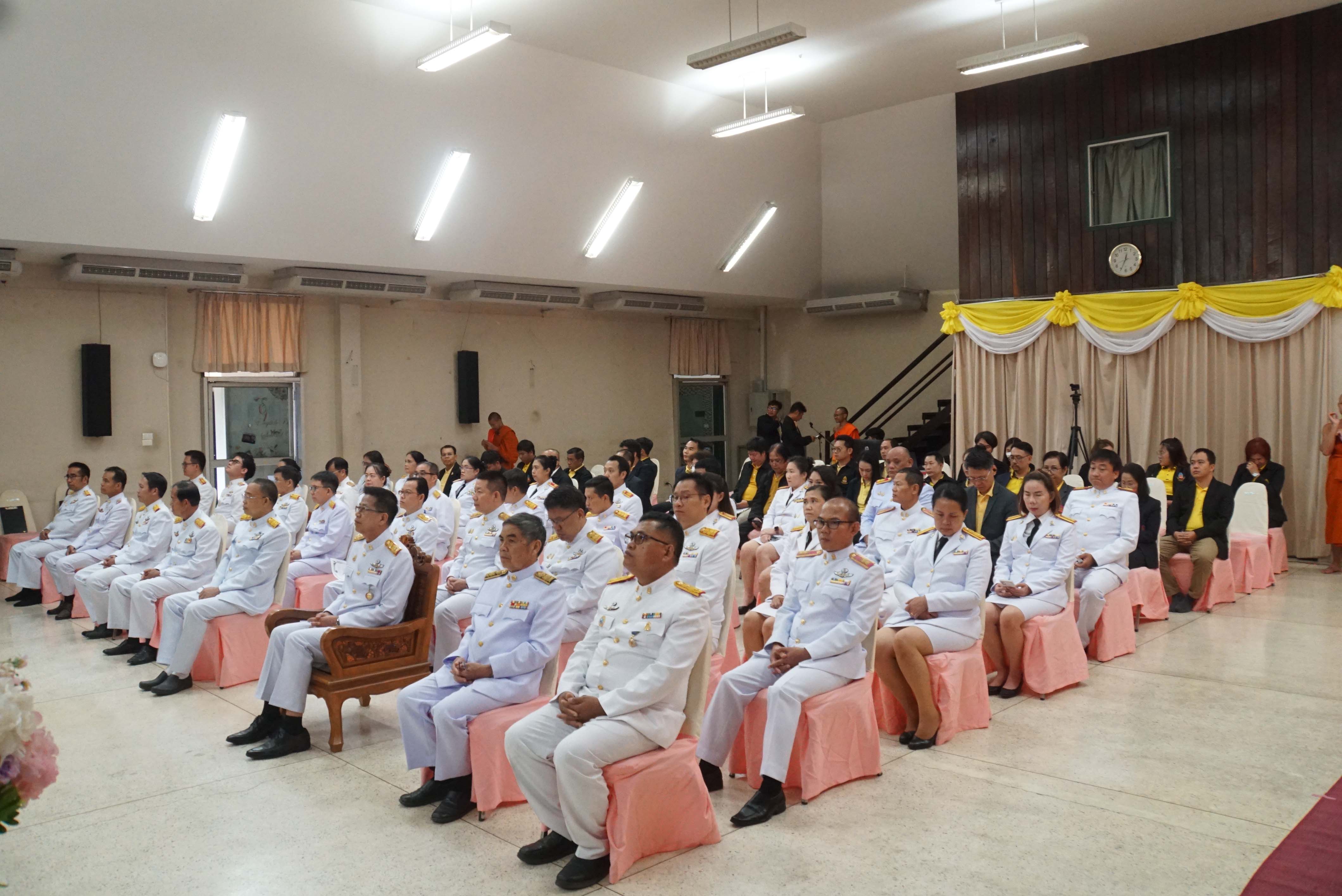 โดยมี รศ.ดร.อภิรมย์ สีดาคำ ผู้ช่วยอธิการบดีฝ่ายกิจการทั่วไป เปิดกรวยกระทงธูปเทียนแพหน้าพระบรมฉายาลักษณ์ พระบาทสมเด็จพระปรเมนทรรามาธิบดีศรีสินทรมหาวชิราลงกรณฯ พระวชิรเกล้าเจ้าอยู่หัว จากนั้น ผู้บริหาร คณาจารย์ เจ้าหน้าที่ และนิสิตฝ่ายคฤหัสถ์ ขับร้องเพลงสรรเสริญพระบารมี และถวายความเคารพพระบรมฉายาลักษณ์