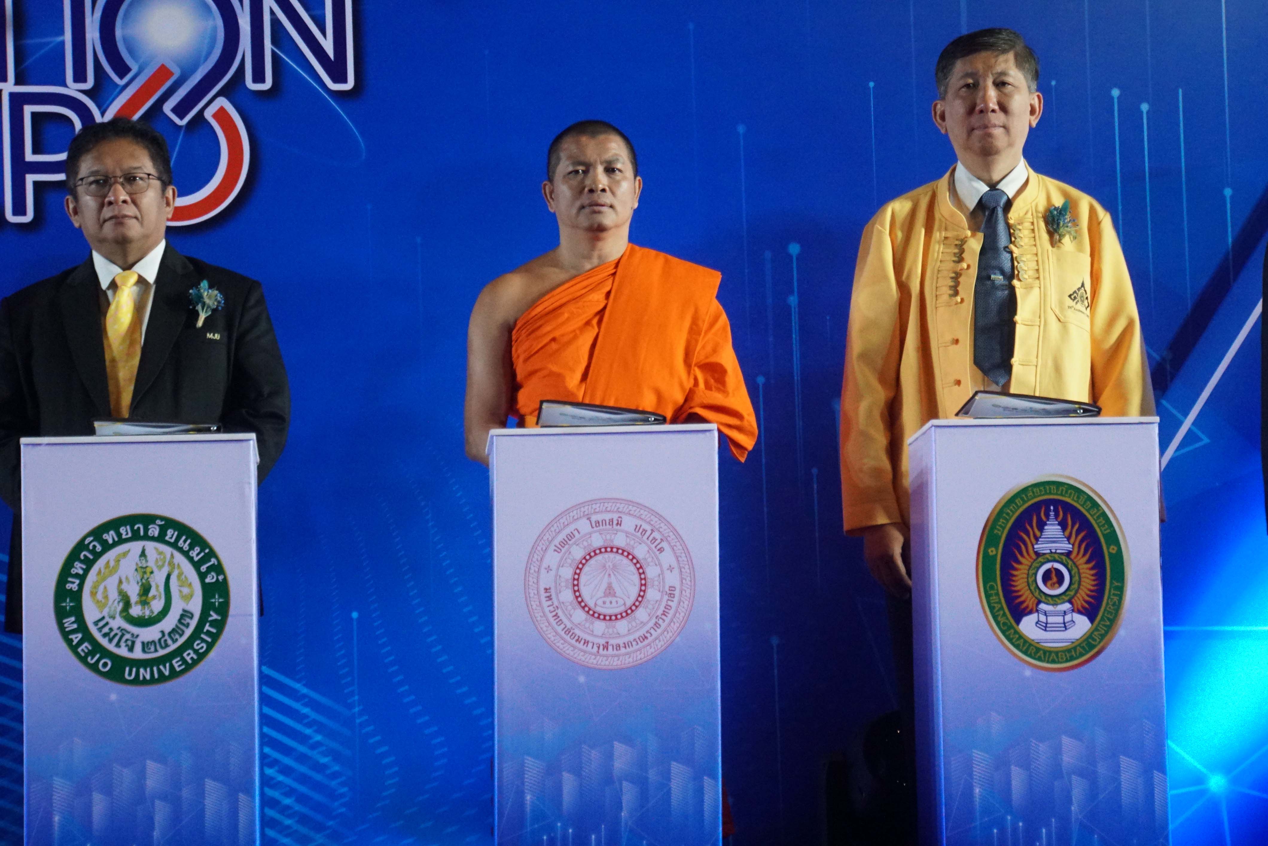 พระครูสิริบรมธาตุพิทักษ์ ,ผศ.ดร. รองอธิการบดี มจร วิทยาเขตเชียงใหม่ ร่วมลงนามความร่วมมือเครือข่ายวิจัยระหว่างมหาวิทยาลัยและเครือข่าย 17 หน่วยงานระหว่าง มหาวิทยาลัยเทคโนโลยีราชมงคล้านนา 6 สมาคม 1 สมาพันธ์ และ 9 มหาวิทยาลัยเครือข่าย พร้อมด้วยพระครูใบฏีกาทิพย์พนากรณ์ ชยาภินนฺโท,ดร. ผู้อำนวยการสำนักวิชากา รร่วมงานการประชุมวิชาการและนวัตกรรมครั้งที่ 10 “สู่วิจัยรับใช้สังคม การขับเคลื่อนเศรษฐกิจและสังคมด้วยนวัตกรรม เพื่อการใช้ประโยชน์ในการพัฒนาประเทศอย่างยั่งยืน" ณ เชียงใหม่ แกรนด์วิว โฮเต็ล แอนด์ คอนเวนชั่น เซ็นเตอร์ จังหวัดเชียงใหม่