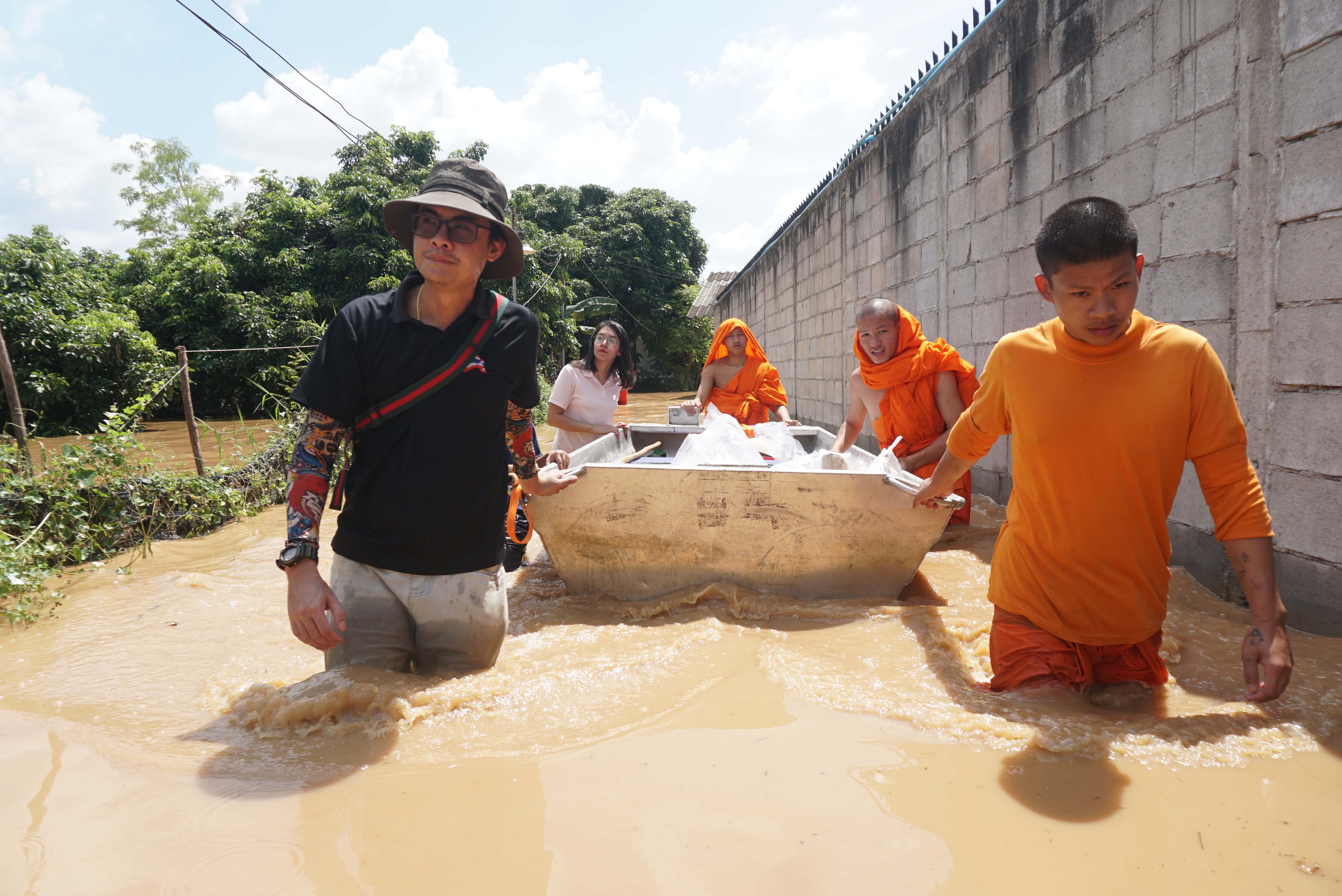 ในวันอาทิตย์ ที่ 6 ตุลาคม 2567 คณะผู้บริหาร คณาจารย์ บุคลากร พร้อมด้วยนิสิต มหาวิทยาลัยมหาจุฬาลงกรณราชวิทยาลัย วิทยาเขตเชียงใหม่ นำโดยพระครูสิริบรมธาตุพิทักษ์, ผศ.ดร. รองอธิการบดี มจร วิทยาเขตเชียงใหม่ พระครูธีรสุตพจน์, ดร. ผู้ช่วยอธิการบดีฝ่ายบริหาร พระครูปริยัติเจิติยานุรักษ์, ผศ.ดร. ผู้อำนวยการวิทยาลัยสงฆ์เชียงใหม่ รักษาการผู้อำนวยการวิทยาเขตเชียงใหม่ พระครูใบฏีกาทิพย์พนากรณ์ ชยาภินนฺโท,ดร. ผู้อำนวยการสำนักวิชาการ ลงพื้นที่ช่วยผู้ประสบอุทกภัยในเขตตำบลยางเนิ้ง อำเภอสารภี จังหวัดเชียงใหม่ และมอบอาหารให้กับจุดที่รับบริการ ณ ป่าช้าวัดเวฬุวัน ซึ่งพื้นที่น้ำท่วมสูง ในบางพื้นที่ ต้องน้ำเรือท้องแบน ออกไปช่วยชาวบ้าน ซึ่งออกมาจากบ้านไมไ่ด้ เนื่องจากน้ำท่วมสูงและไหลเชี่ยวมาก ในครั้งนี้มีหน่วยงานกู้ภัยออกมาข่วยกันเป็นจำนวนมาก และมีชาวบ้านที่ได้รับผลกระทบเป็นจำนวน 100 กว่าหลังคาเรือน และมีชาวบ้านออกมารับอาหารที่นำไปแจกจ่าย อย่างมีความหวัง